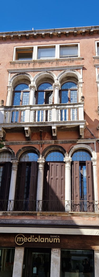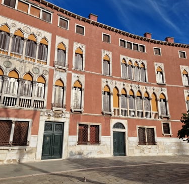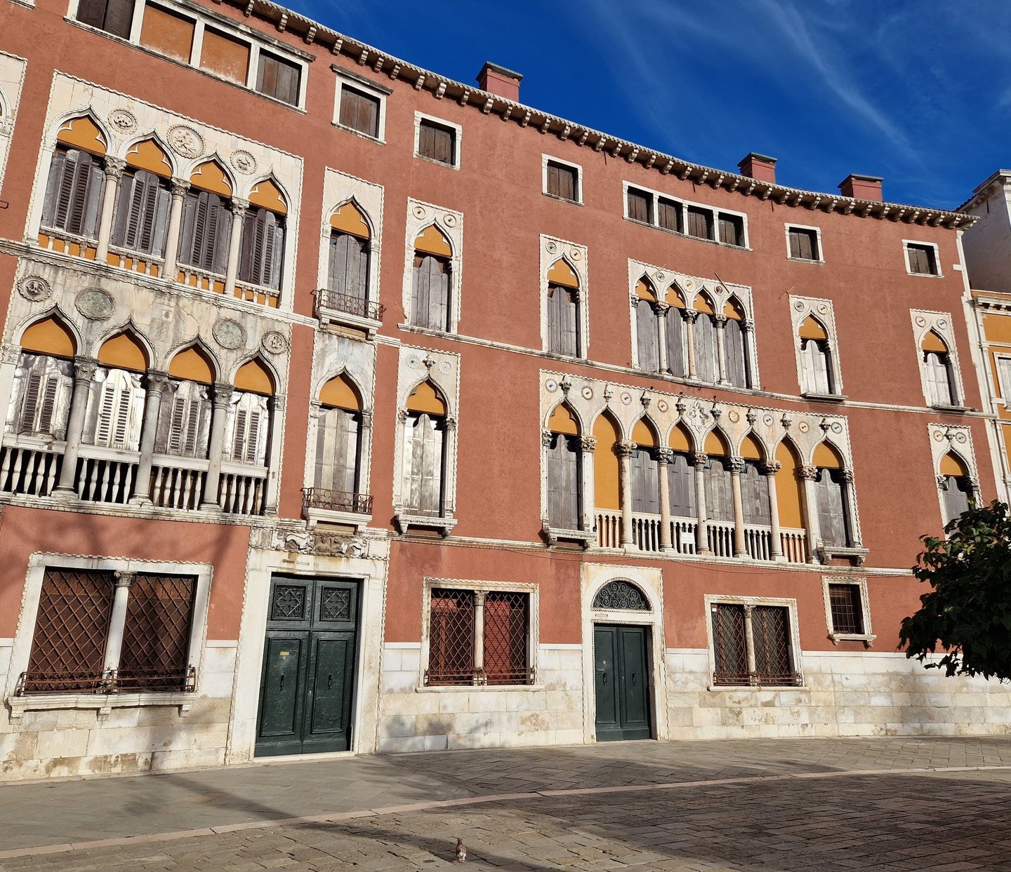 La facciata di questo palazzo è curva : questo perchè seguiva il corso di un canale, il cui tratto che attraversava Campo San Polo venne bloccato nel 1761, 15 anni dopo la nostra storia.