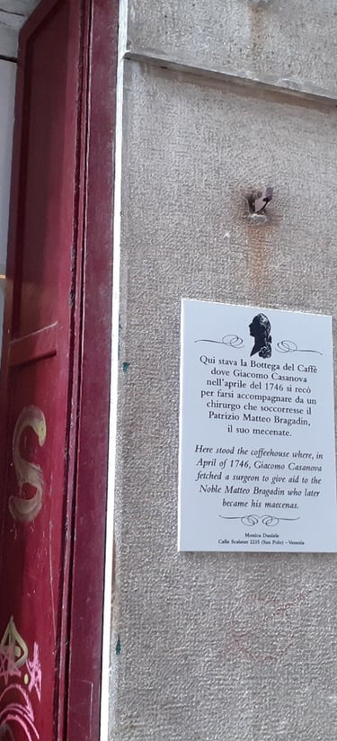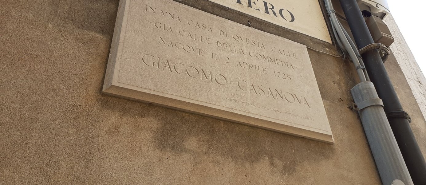 Il luogo di nascita di Giacomo Casanova non si trova al posto in cui c'è la lapide, calle Malipiero (già calle della Commedia). Era pero il luogo in cui abitavano i suoi genitori l'anno della sua nascita.