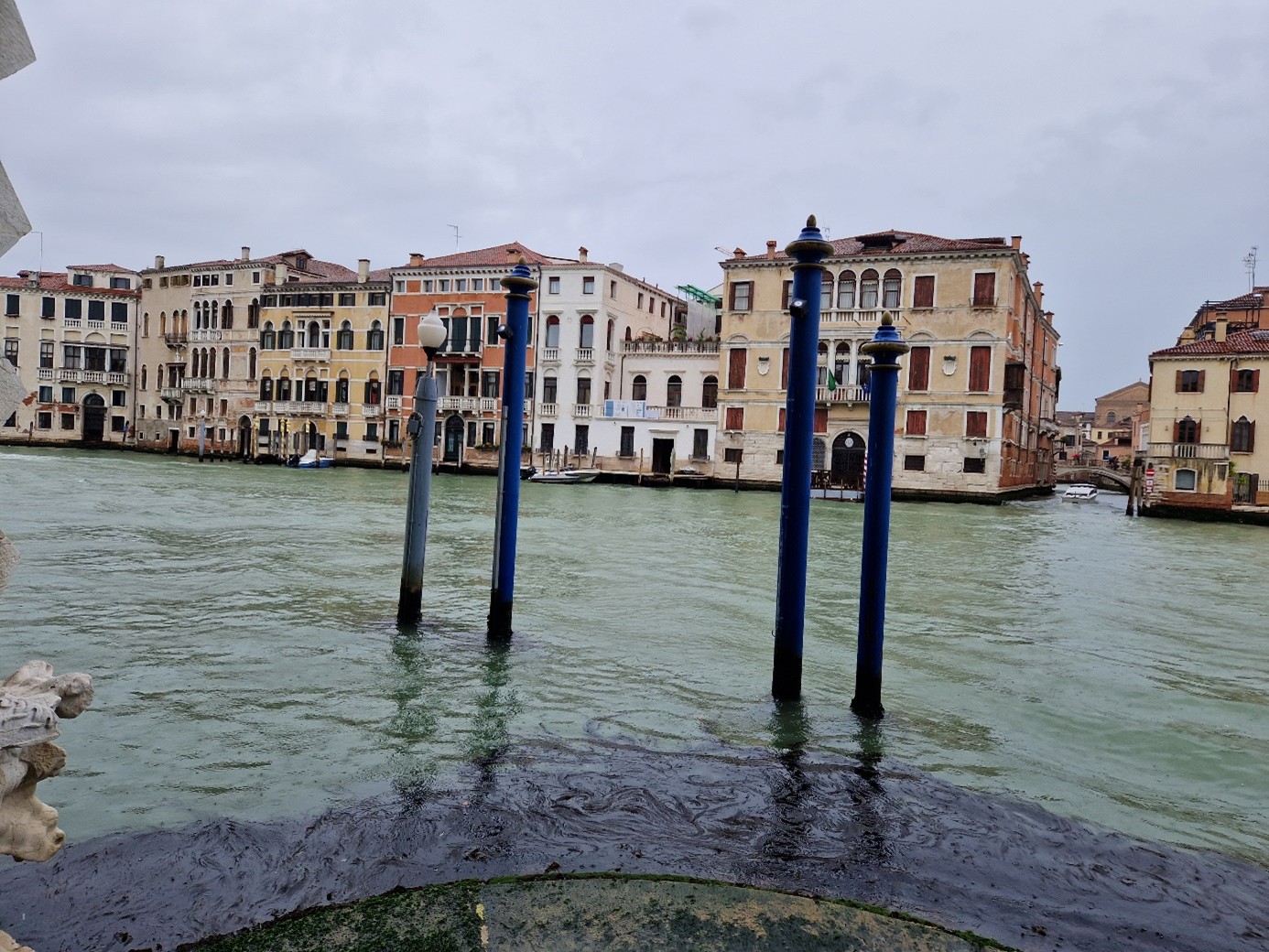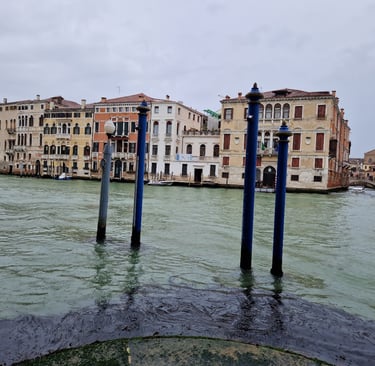 Oui, ça sera nos visites du jour ! Regarde les mascheroni, les masques sculptés en bas du palais ! On se trouve maintenant sur le rio delle Due Torri …