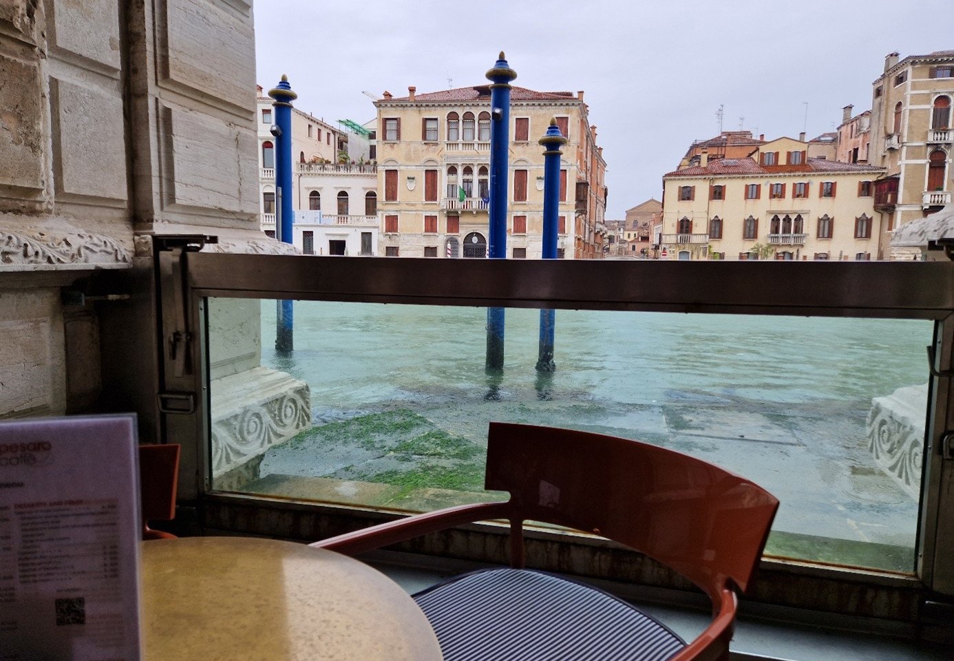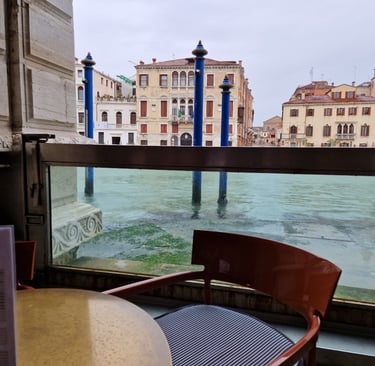 On va maintenant boire un cappuccino sur la terrasse de la cafétéria du palais, au bord du Grand Canal…