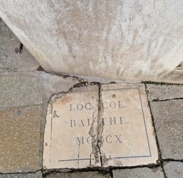 Sur cette place se trouvait un bloc de maisons, le case dei Tiepolo où habitait Bajamonte Tiepolo, qui, en 1310, tenta, à la tête d’une conjuration, de renverser la République de Venise. Il fut exilé en Dalmatie et l’Etat ordonna la démolition des maisons des Tiepolo et à leur emplacement fut érigé une colonne d’infamie (que l’on trouve aujourd’hui au musée Correr) ; il subsiste de cette colonne cette plaque avec l’inscription : col. Bai., colonna Baiamonte et l’année en chiffres latins…