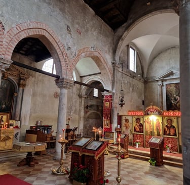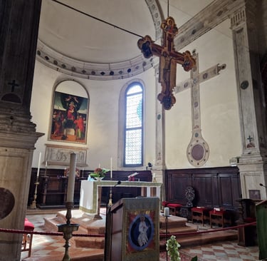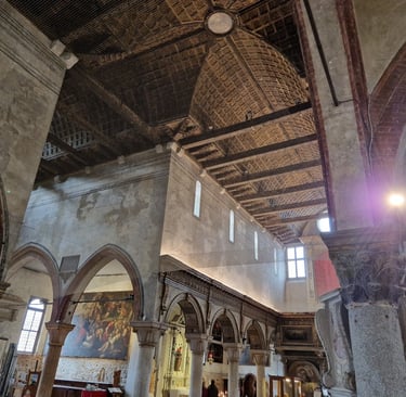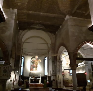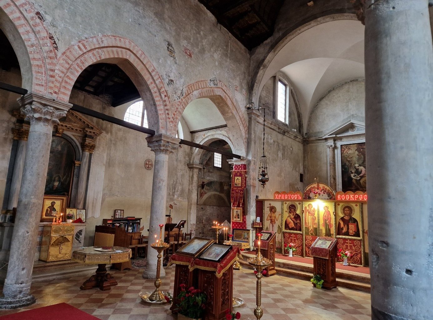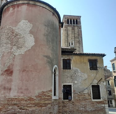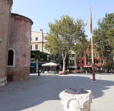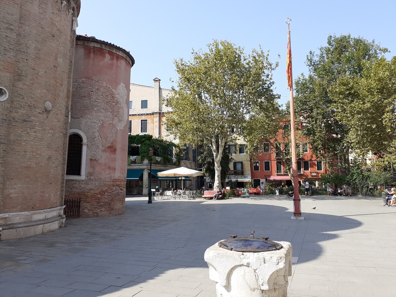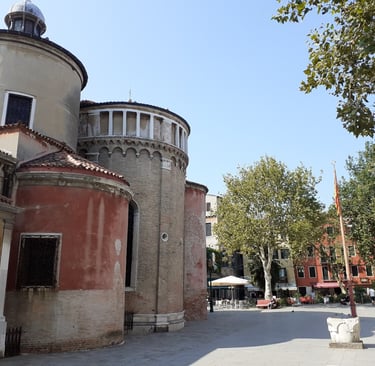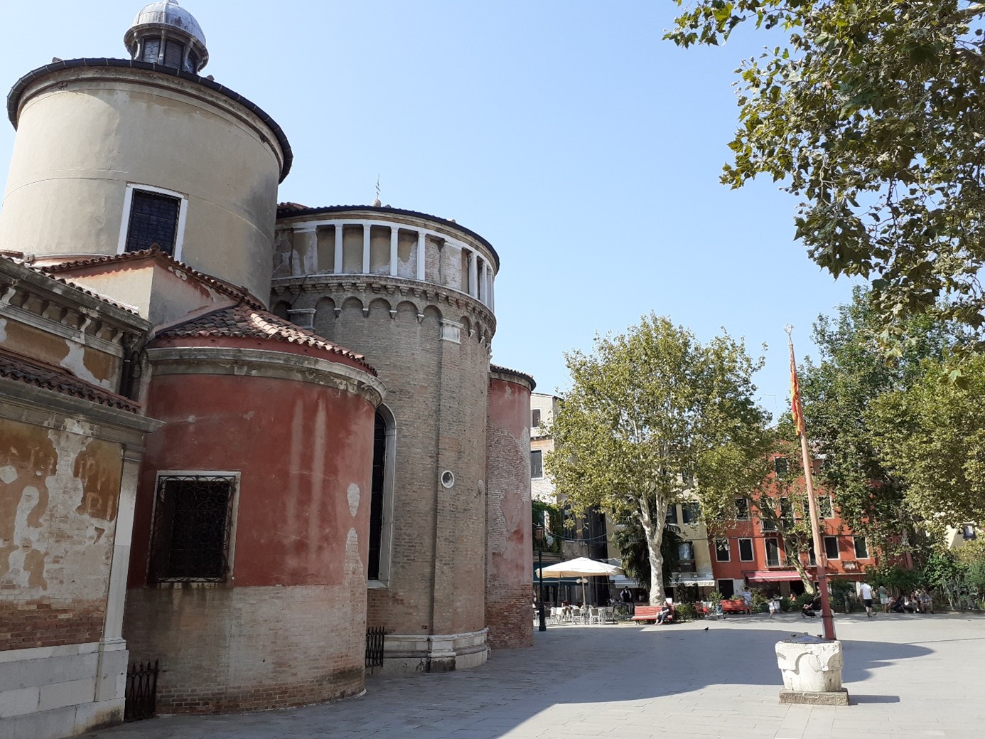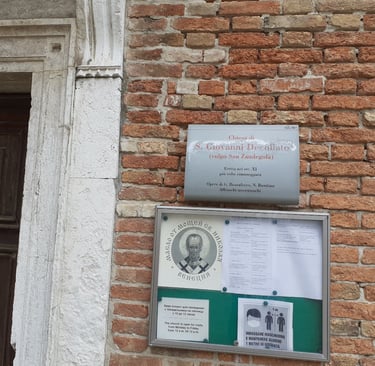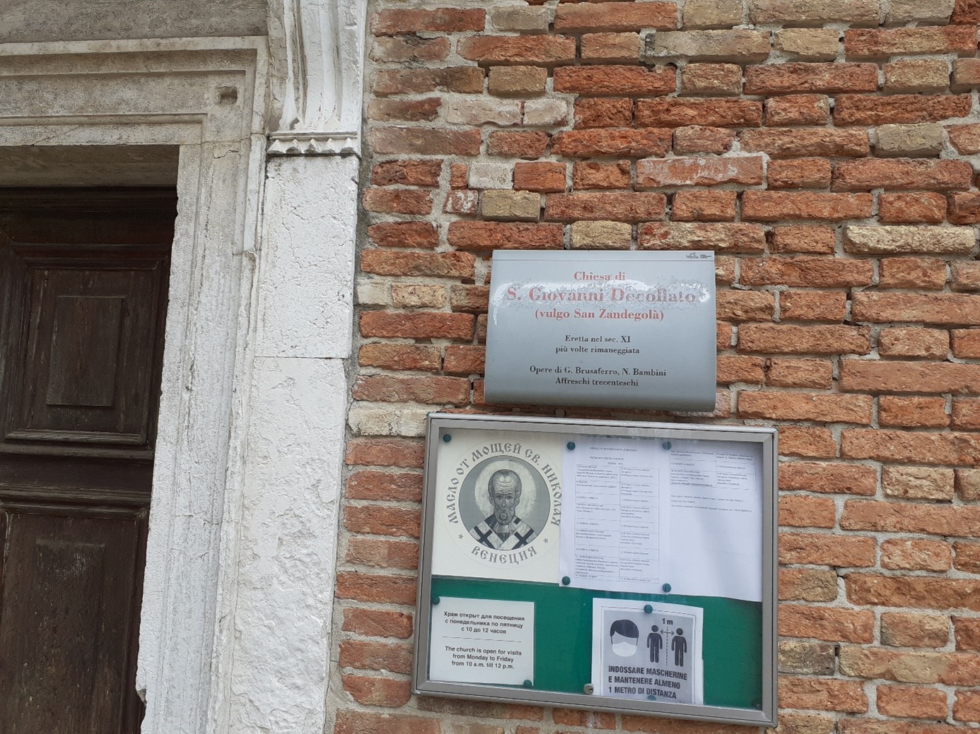 Sur cette place se trouve l’église San Zan Degolà, corruption de San Giovanni Decollato, Saint Jean décapité, dédiée à Saint Jean-Baptiste, le prophète qui a annoncé la venue du Christ et qui l’a baptisé sur les bords du Jourdain. La fondation de cette église est une des plus anciennes de la Venise réaltine car elle fut érigée en 1007 par la famille Venier. Elle fut restaurée au XIIème siècle par la famille Pesaro, puis en 1703. C’est maintenant une église orthodoxe.