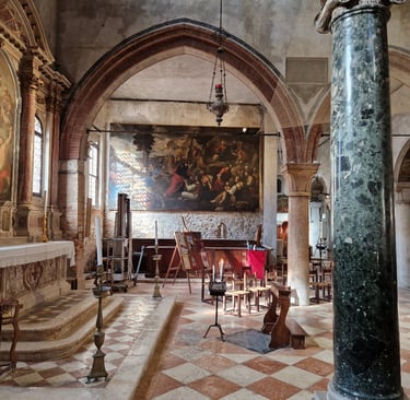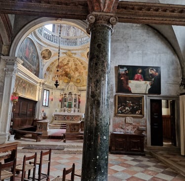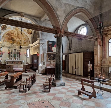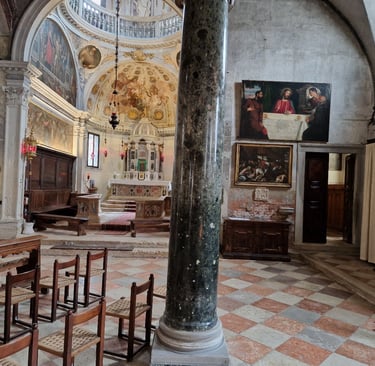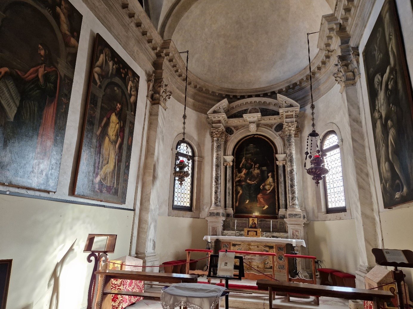 Dans le presbytère, on peut admirer la dernière œuvre de Lorenzo Lotto à Venise : La Madone et les saints. Aux pieds de la Vierge, se trouvent, à gauche San Giacomo et à droite, Sant’Andrea.