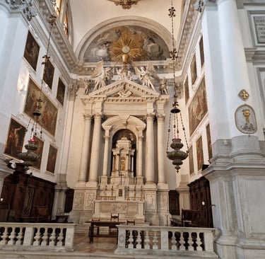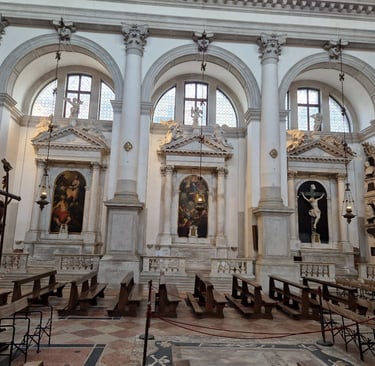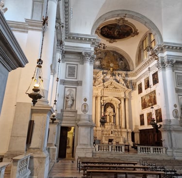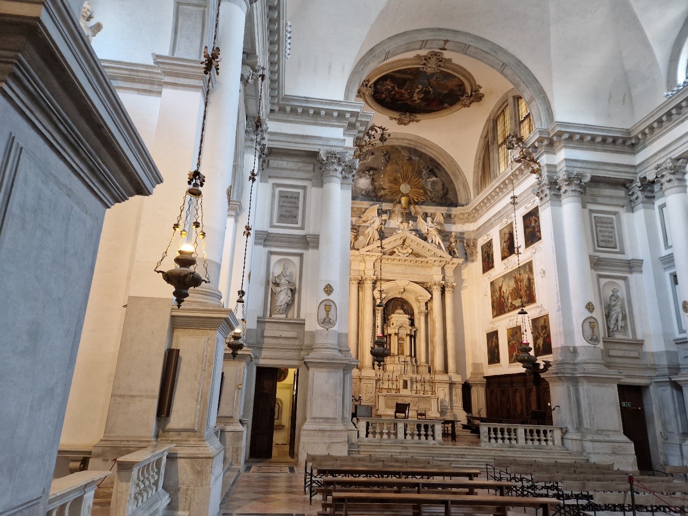 On va la visiter tout de suite…On trouve des œuvres de Piazzetta, de Giambattista Tiepolo et de Ricci… Dans cette église est enterré Antonio Foscarini, un sénateur vénitien qui fut aussi ambassadeur à Londres. Regarde son buste, qui est toute une histoire !