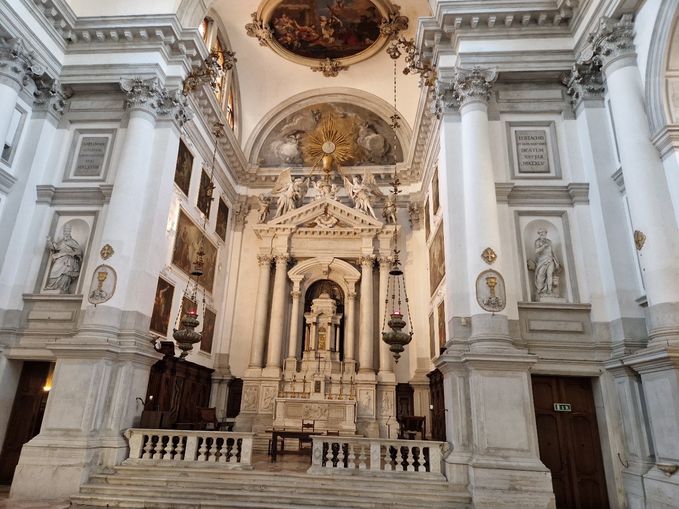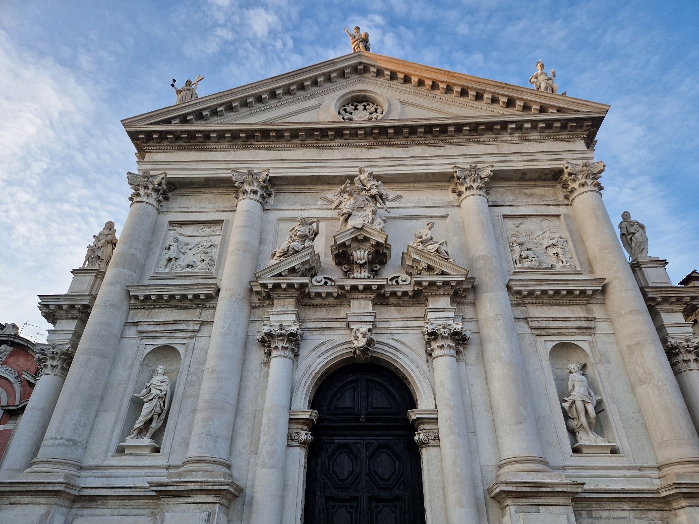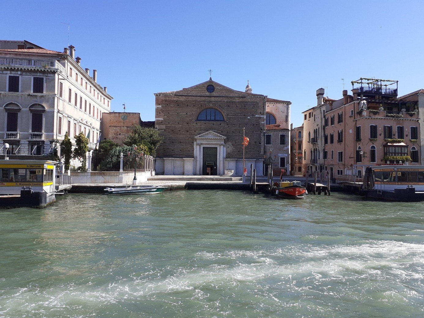 Oui, il fallait bien qu’on le fasse au moins une fois ! On sera aussi au pied de l’église San Stae. San Stae est la contraction dialectale de Sant’ Eustachio, Saint Eustache. Elle aurait été fondée au Xème siècle. Saint Eustache est un martyr romain du IIème siècle. C’était un général romain du nom de Placidus. Un jour, lors d’une partie de chasse, une croix lui apparut entre les bois d’un cerf et une voix divine l’interpella. Il se fit baptiser et prit le nom d’Eustache. L’église initiale fut démolie à la fin du XVIème siècle – car elle subissait des affaissements importants – et reconstruite en 1709, grâce au legs d’Alvise II Mocenigo, par Domenico Rossi pour la façade baroque et Giovanni Grassi pour l’intérieur…