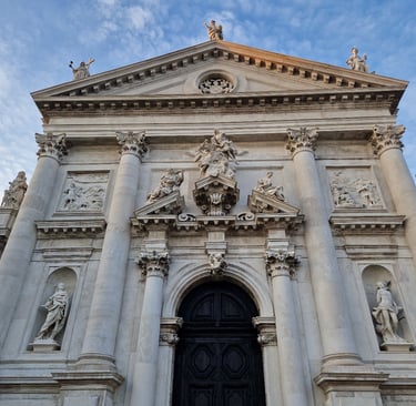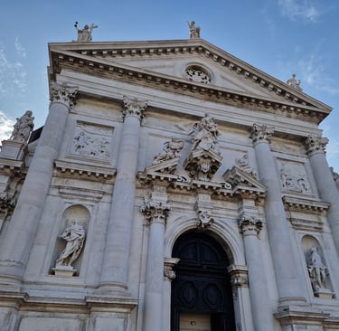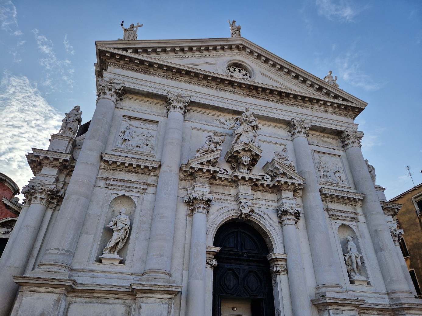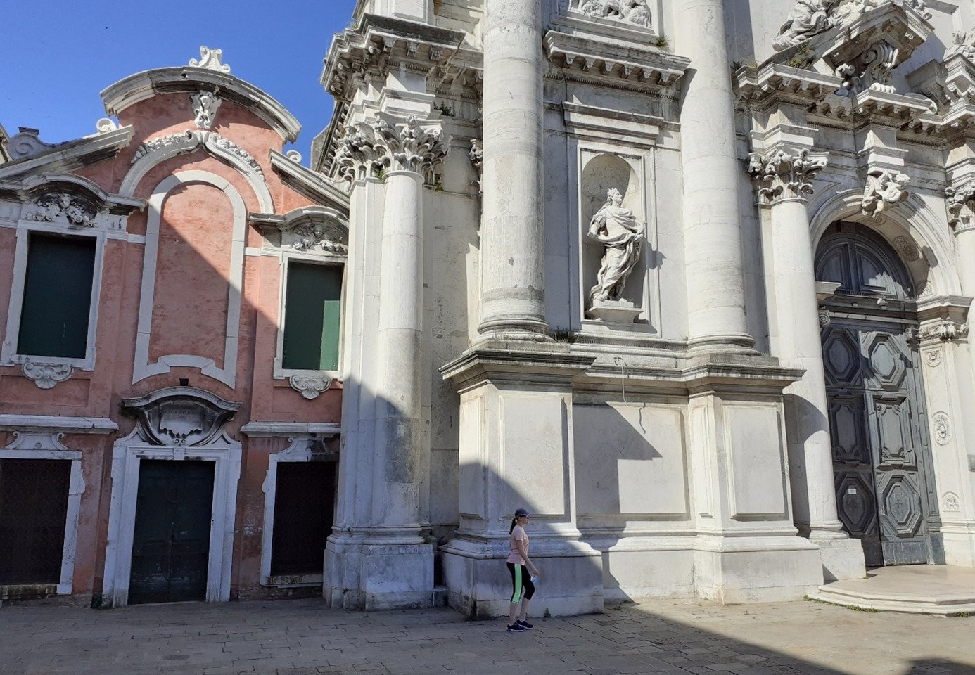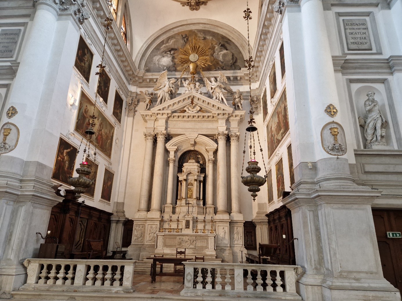 Oui, il fallait bien qu’on le fasse au moins une fois ! On sera aussi au pied de l’église San Stae. San Stae est la contraction dialectale de Sant’ Eustachio, Saint Eustache. Elle aurait été fondée au Xème siècle. Saint Eustache est un martyr romain du IIème siècle. C’était un général romain du nom de Placidus. Un jour, lors d’une partie de chasse, une croix lui apparut entre les bois d’un cerf et une voix divine l’interpella. Il se fit baptiser et prit le nom d’Eustache. L’église initiale fut démolie à la fin du XVIème siècle – car elle subissait des affaissements importants – et reconstruite en 1709, grâce au legs d’Alvise II Mocenigo, par Domenico Rossi pour la façade baroque et Giovanni Grassi pour l’intérieur…