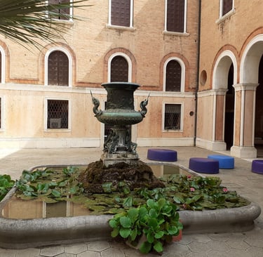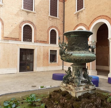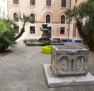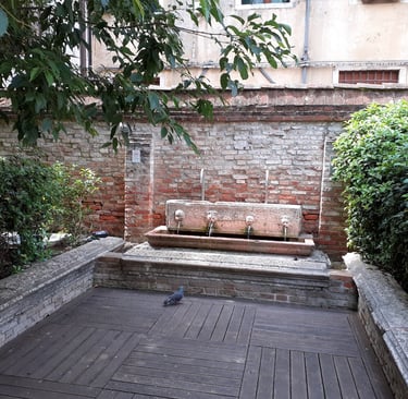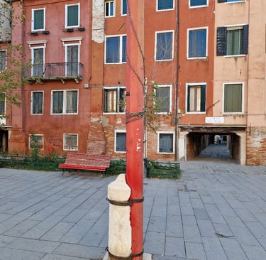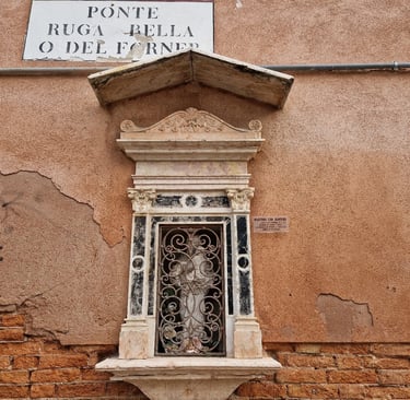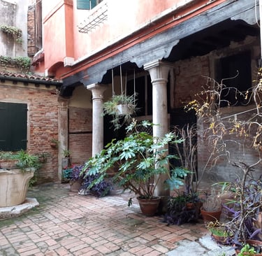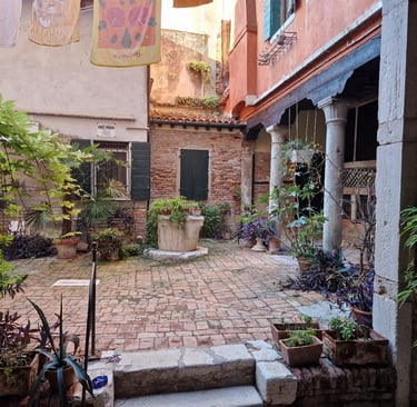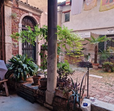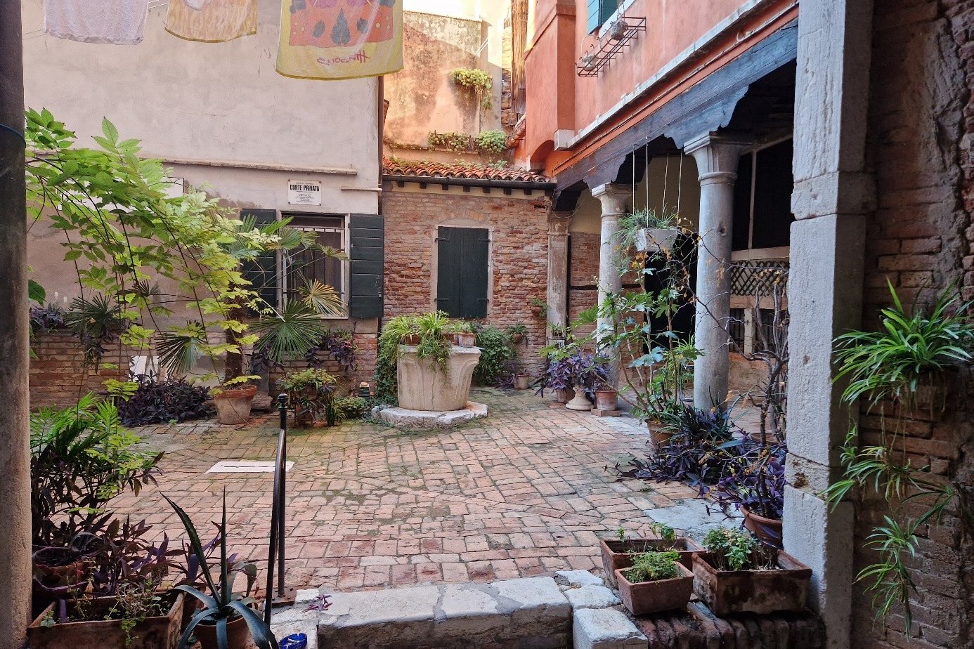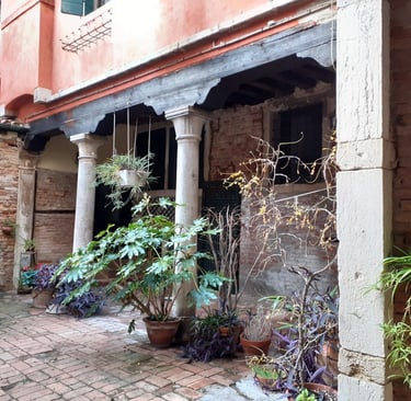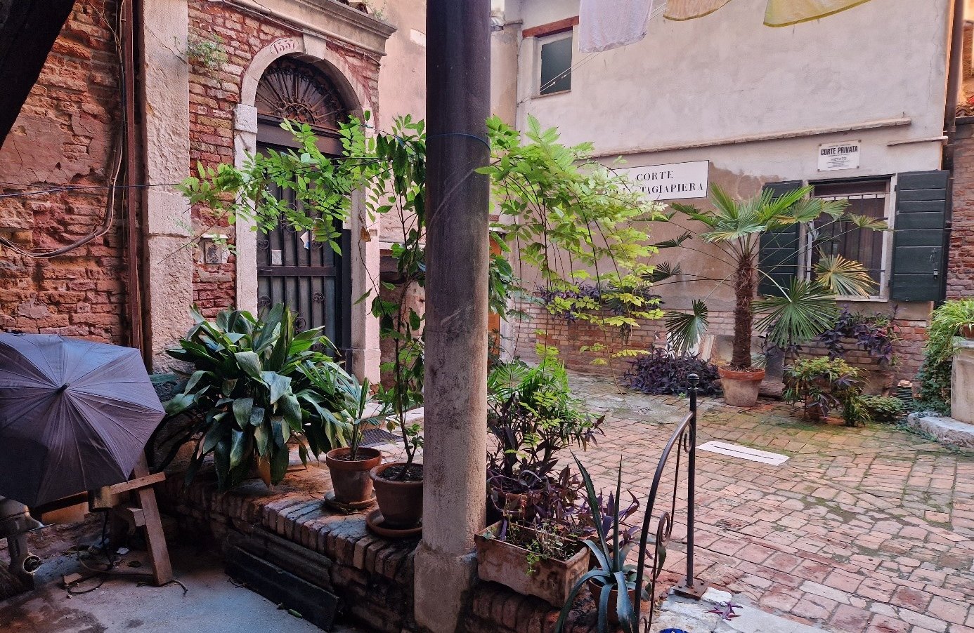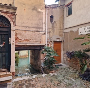 Maintenant, je t’emmène voir une très belle petite cour : la corte Tagliapietra. On prend la calle del tentor et la quatrième ruelle à droite : le ramo de le Oche… Nous voici dans la corte Tagliapietra.