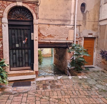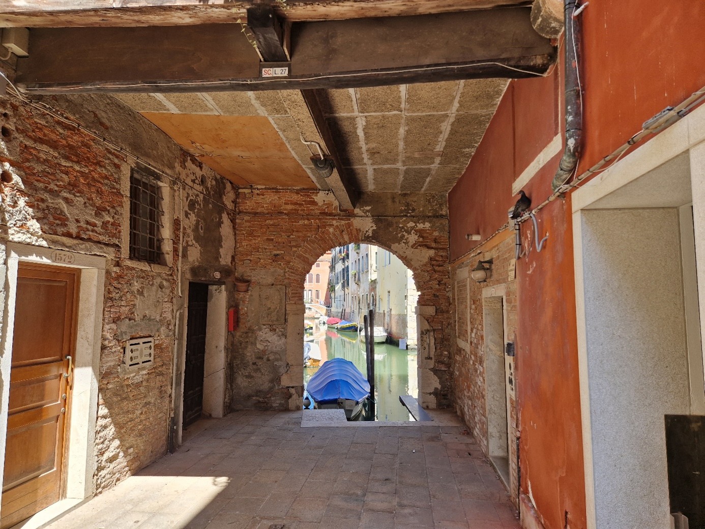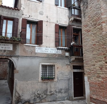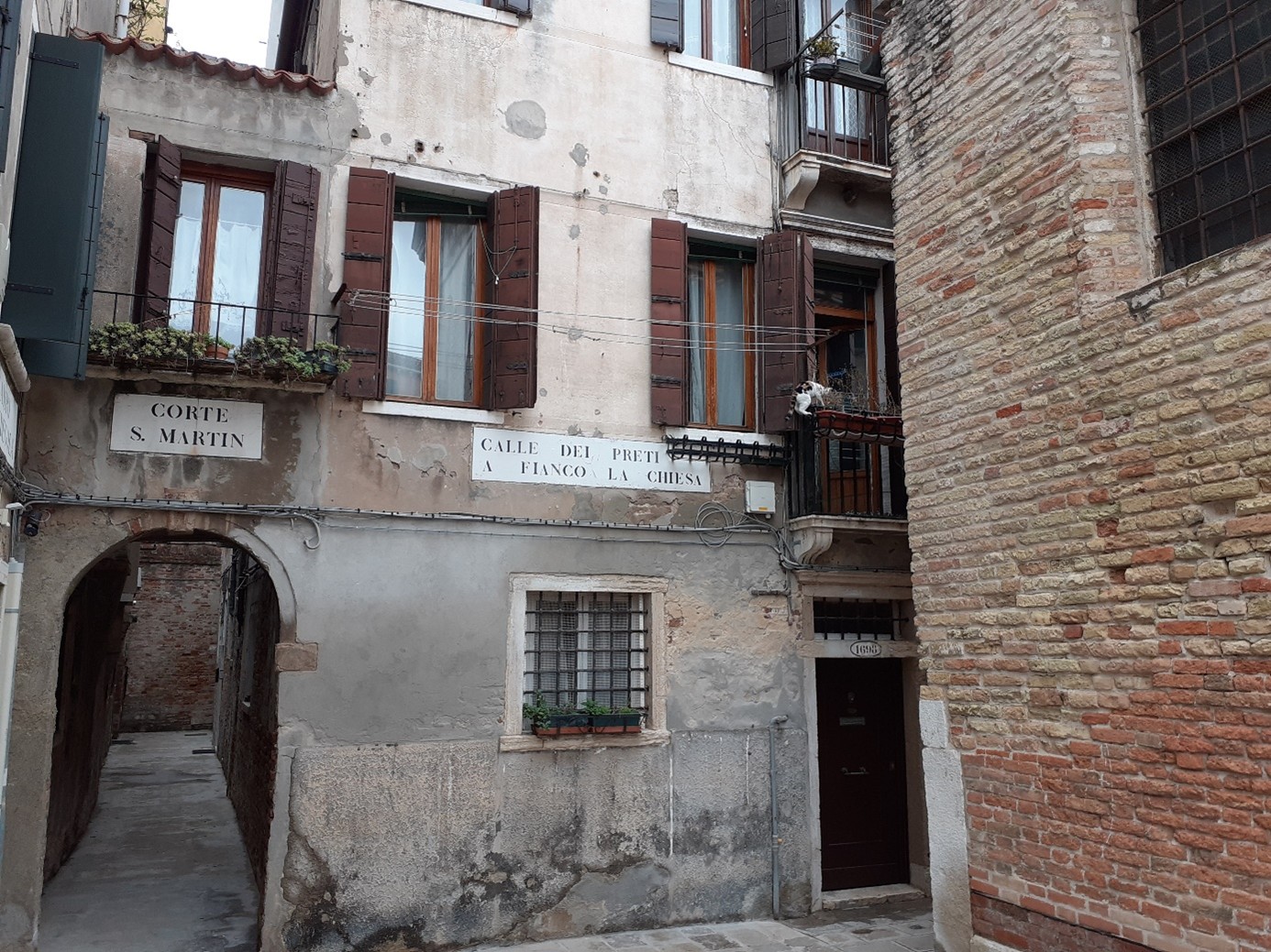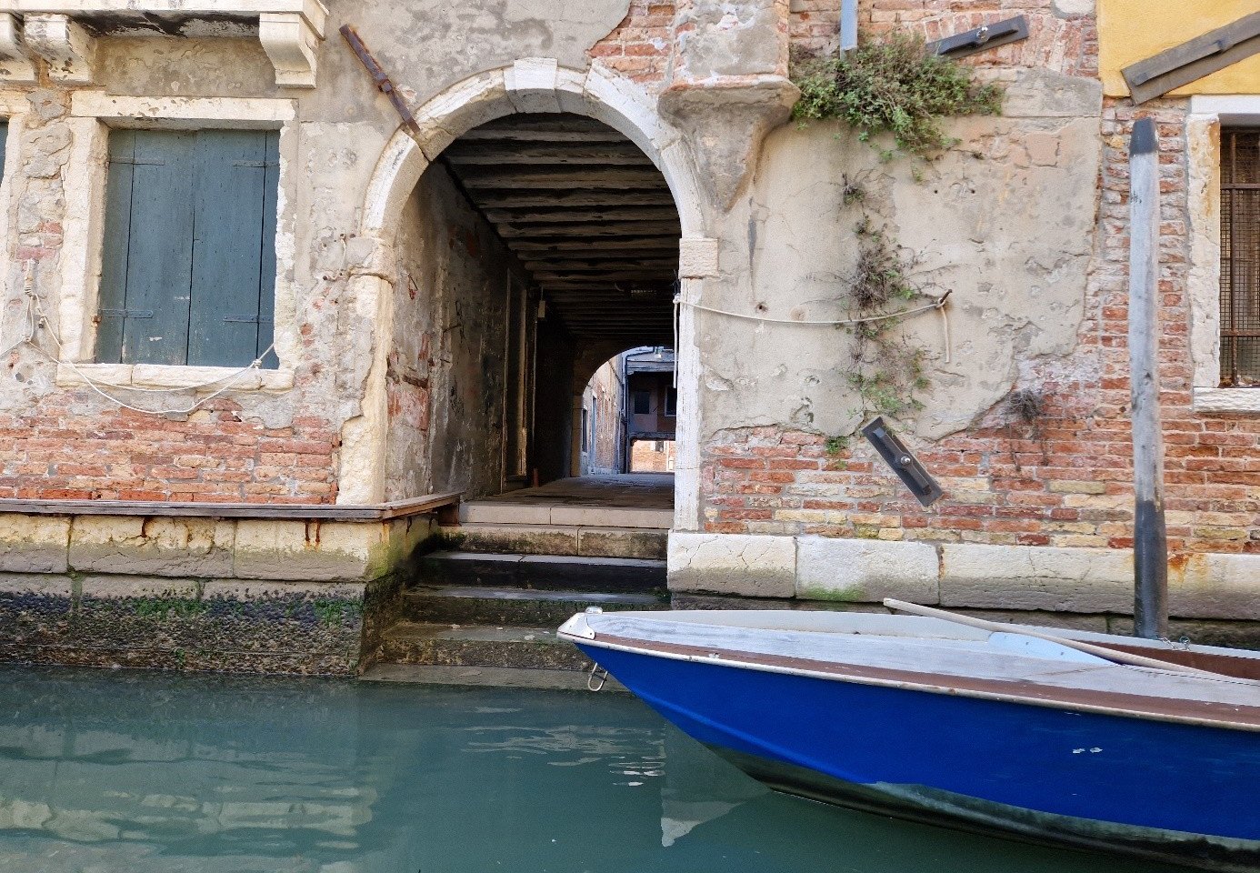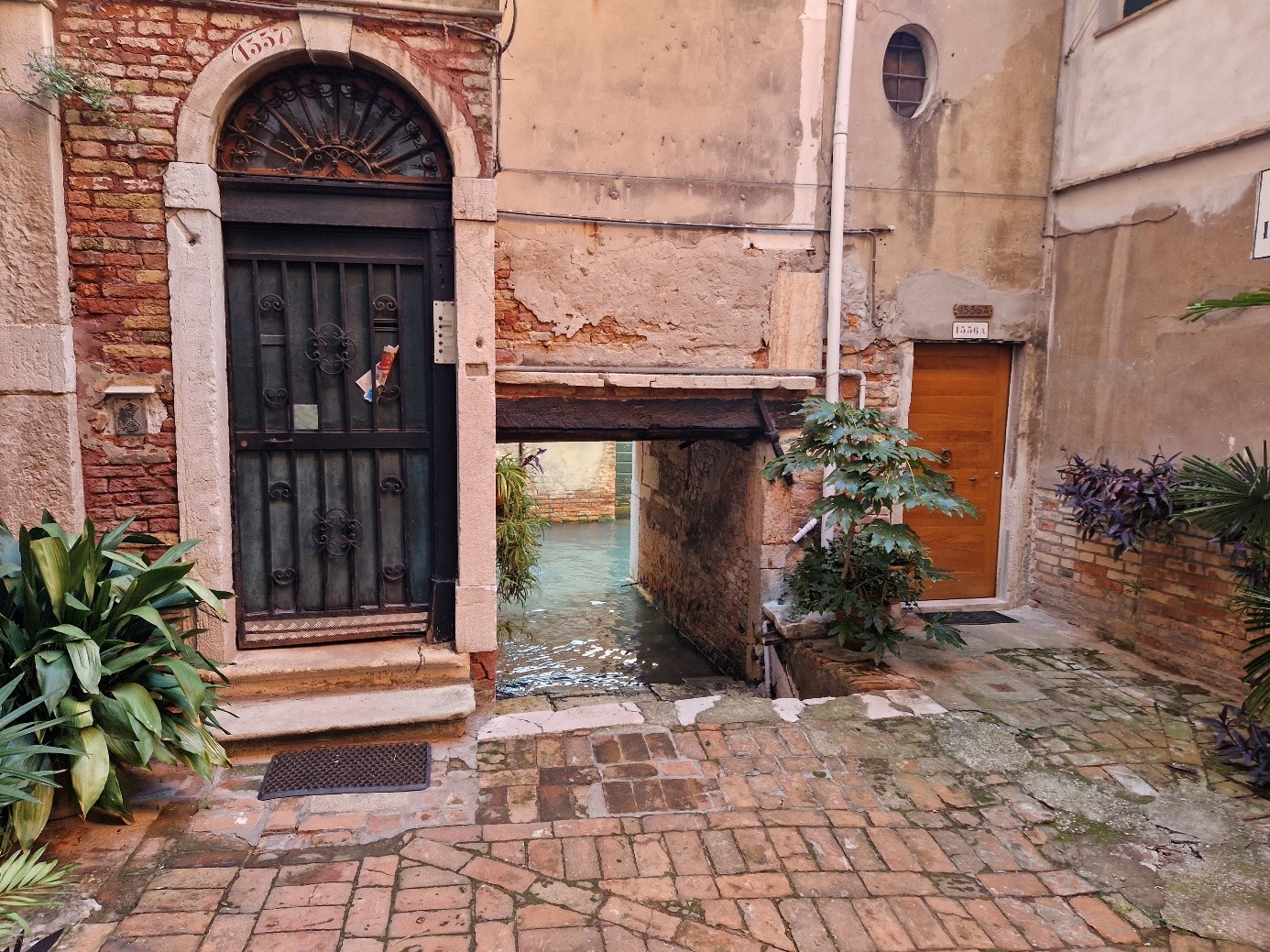 On retourne dans calle del Tentor, que l’on prend à gauche… A droite, se trouve une autre cour qui donne sur le canal, sur le rio de san boldo, comme la calle de Mezo et la corte Zambelli… Cette cour, s’appelle la corte de Cà Mariani.