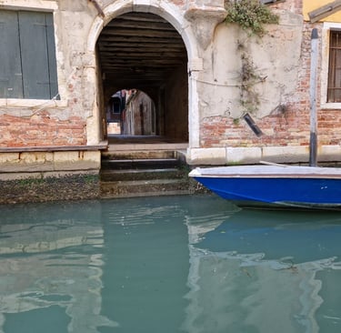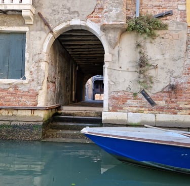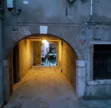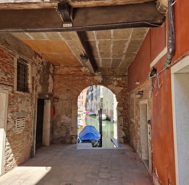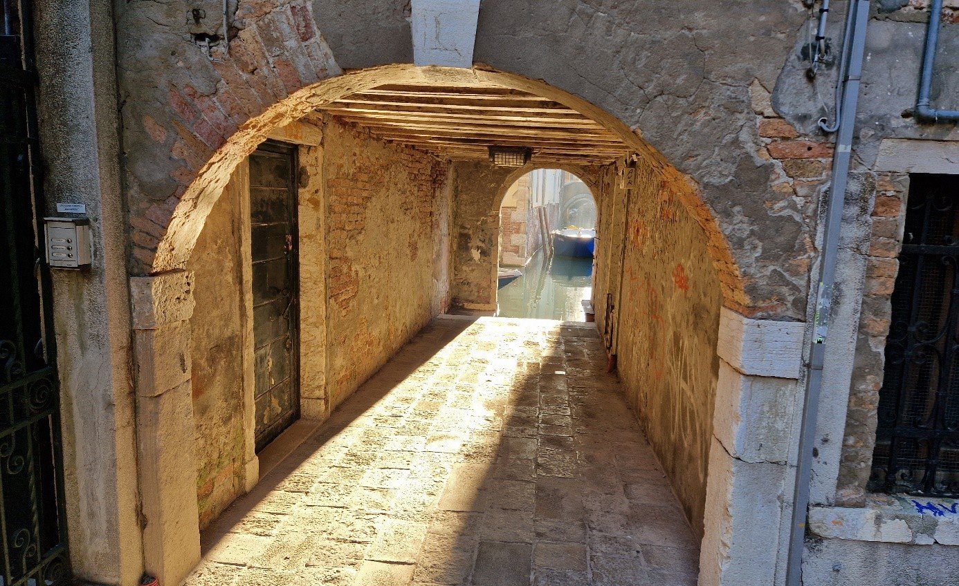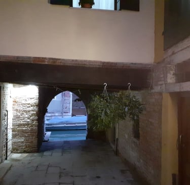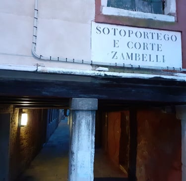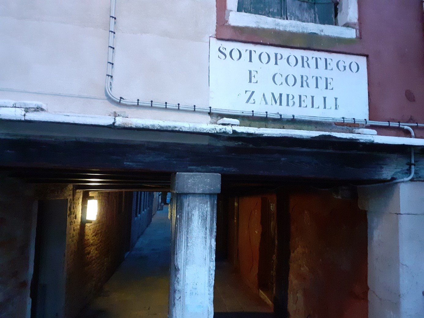 Én face de l'église, il y a deux portiques qui mènent au bord du rio San Boldo. d'abord, ce sottoportego qui coinduit à la corte Zambelli...