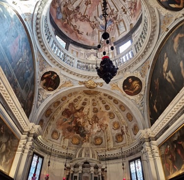 A l’intérieur, il y a aussi de belles fresques rococo de Jacopo Guarana et Agostino Mengozzi Colonna…