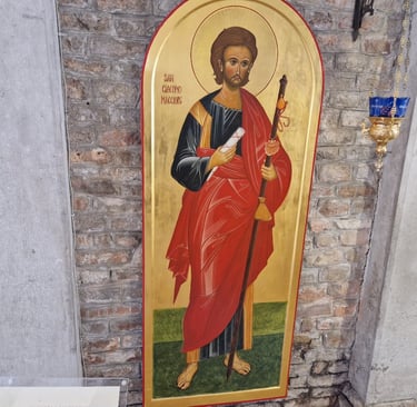 Avant de sortir, regarde cette icône de San Giacomo, réalisée par Gion Amedeo en 2014 !