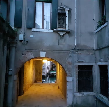 En arrivant du rio del Megio, au niveau de ce portique, Selima la vit lui faire un signe. Elle en resta pétrifiée de bonheur. Elle n’osa pas se rapprocher pour ne pas faire peur à la jeune fille…