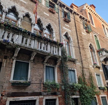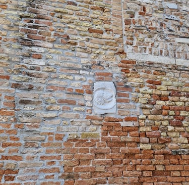 Regarde tout en haut de ce palais ! Ce sont deux oculi qui indiqueraient qu’un membre de la famille Belloni fut capitan da mar, c’est-à-dire amiral de la flotte vénitienne….