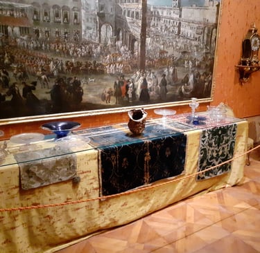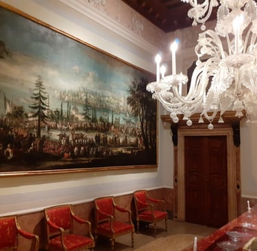 Les Mocenigo étaient une famille originaire de Milan. Ses membres s’illustrèrent souvent dans l’histoire de la Sérénissime., notamment à plusieurs reprises contre les Turcs ; l’un d’eux fut élu doge en 1474 après avoir aidé la reine Caterina Corner contre des ennemis. Il y eut cinq autres doges dans la famille. En 1954, Alvise Mocenigo légua son palais à la ville, qui le transforma en musée ; entrons le visiter !