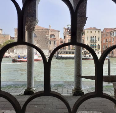 Salizada vient de salizo qui signifie « pavé ». Les premières rues de Venise étaient en terre battue puis à partir de 1264, recouvertes de briques. A la fin du XVIIème siècle, le provéditeur – une sorte de ministre – Antonio Grimani fit revêtir toutes les rues de masegni, des pavés en trachyte extraite des collines Euganéennes, au sud-ouest de Padoue. Regarde d’abord la belle vue sur le Grand Canal ! En face, c’est San Marcuola. Et à droite, on peut voir la façade du Fondaco dei Turchi…