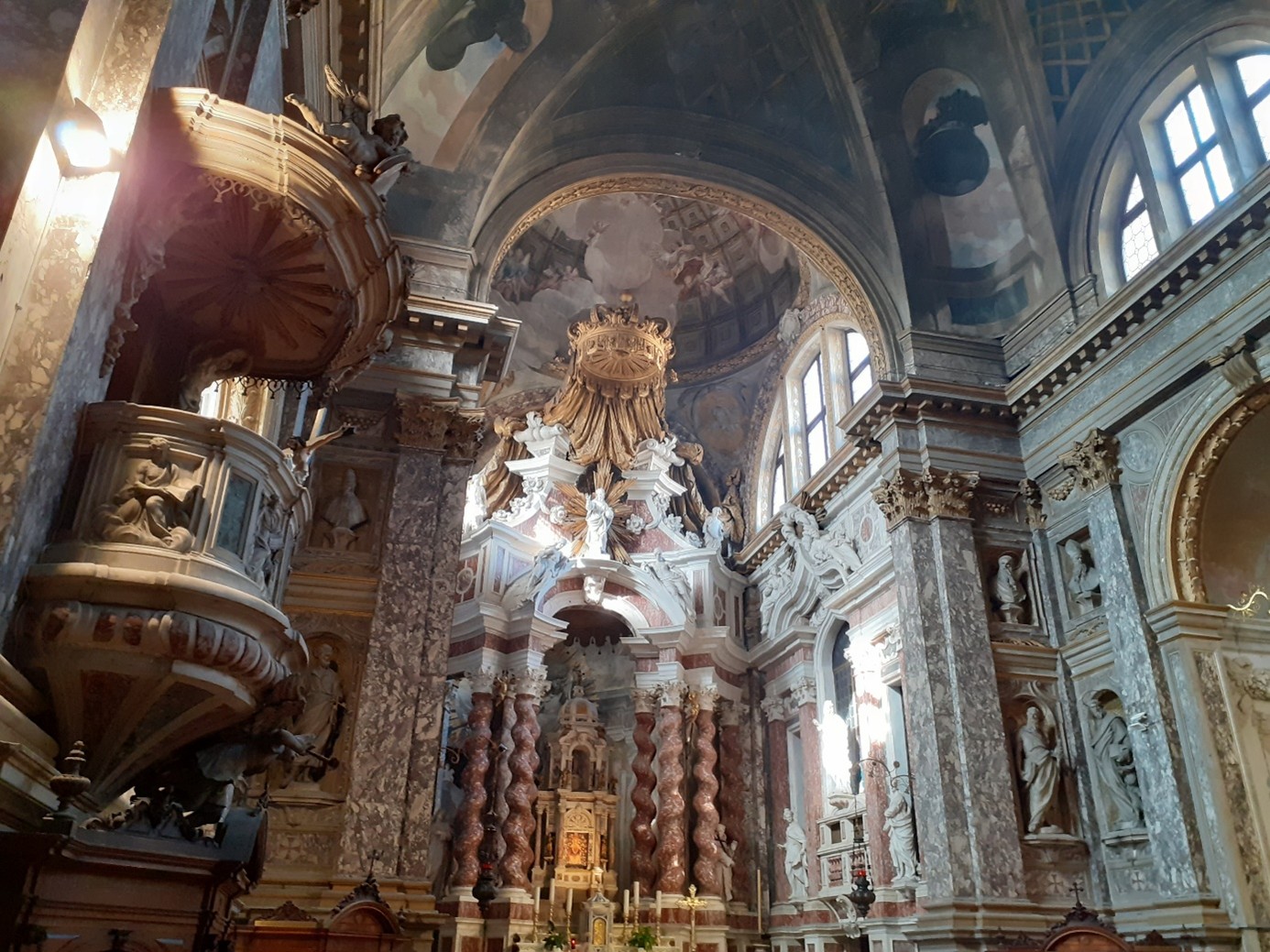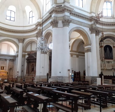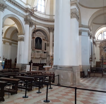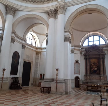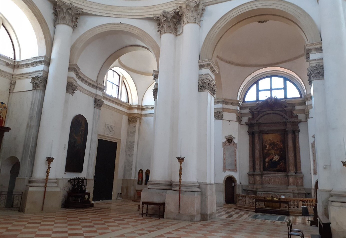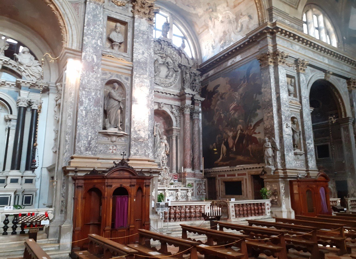 Admirons maintenant le presbytère : comme l'ensemble de l'église, le presbytère commença à être réalisé sur les plans de Baldassare Longhena. Mais il connut de profondes transformations, aux alentours de 1700, de la part du successeur de celui-ci, fra Giuseppe Pozzo.