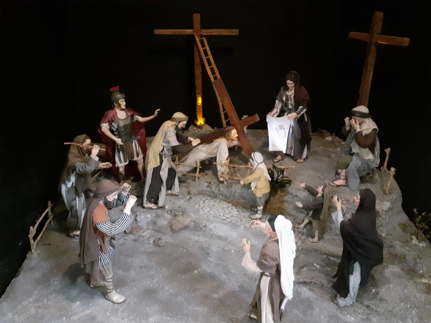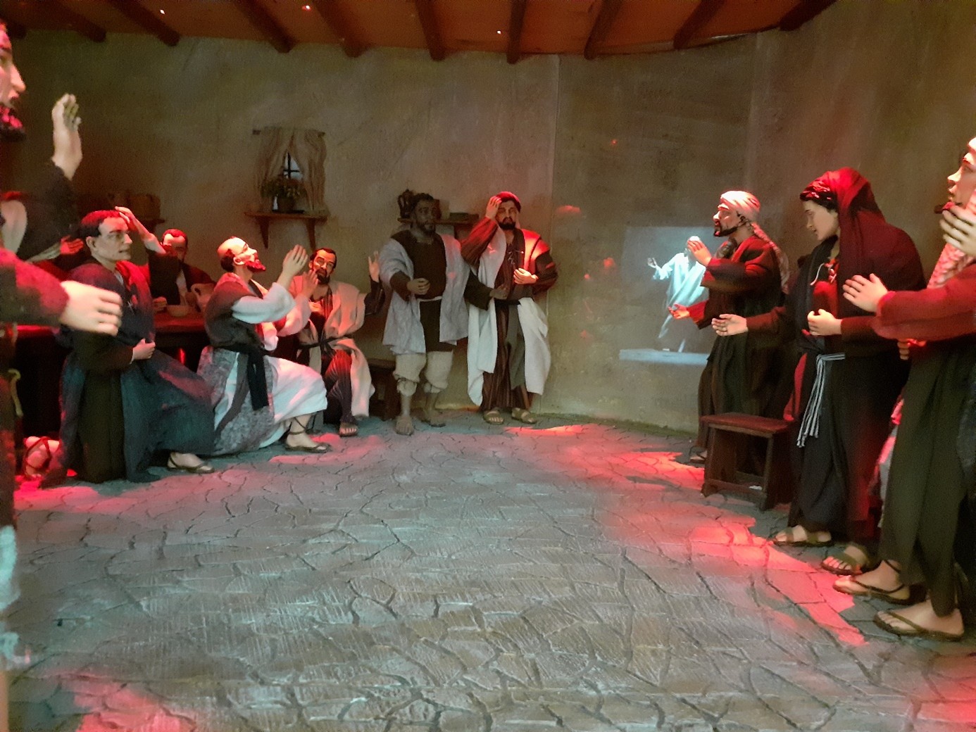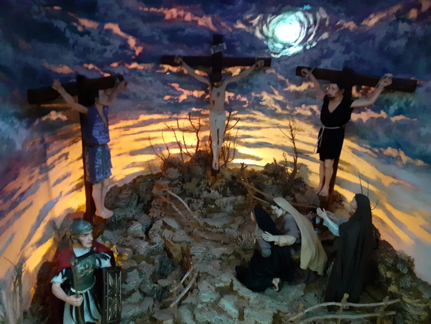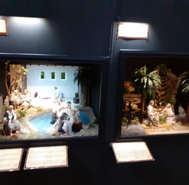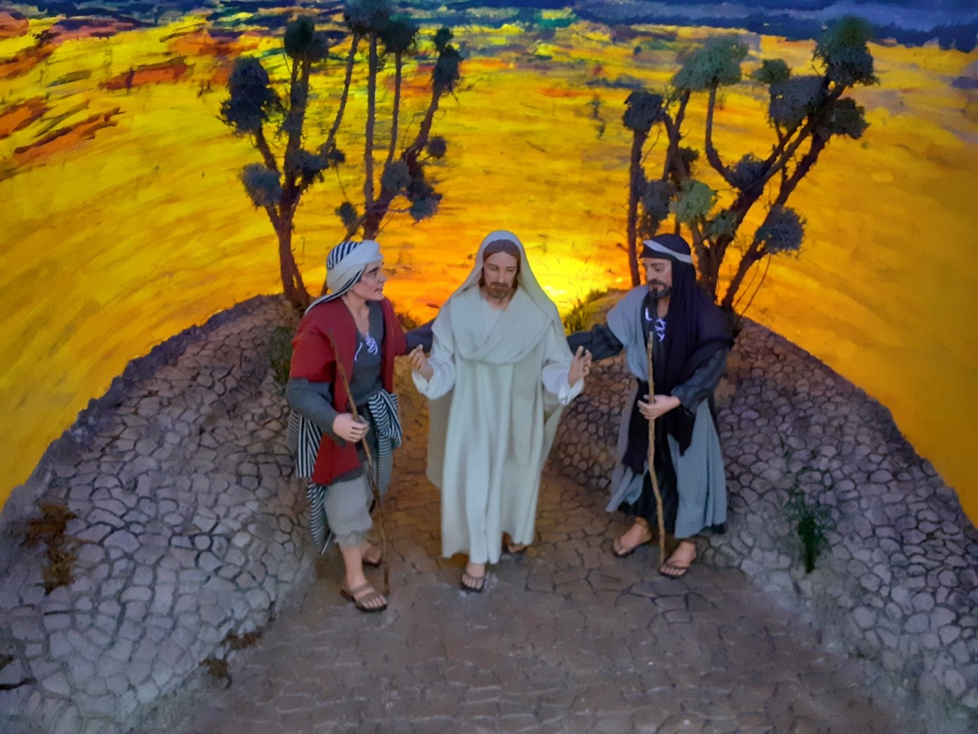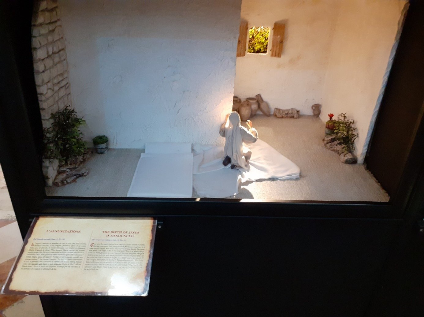 Oui, c’est très émouvant de la voir ainsi… On va voir maintenant le Diorami de la vie de Jésus : la vie de Jésus représentée par des crèches…