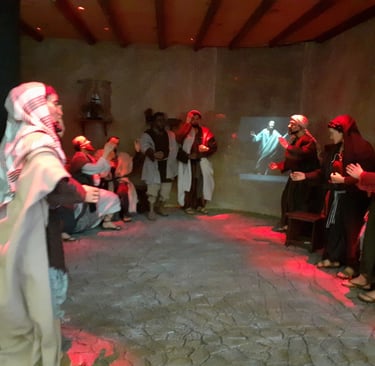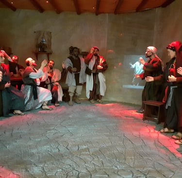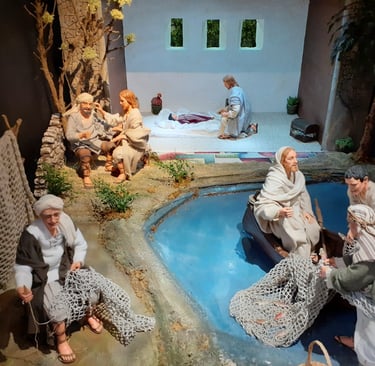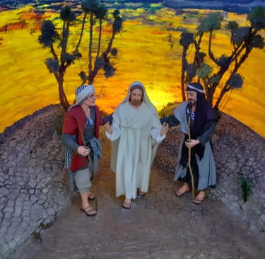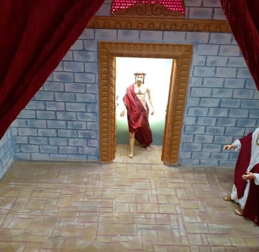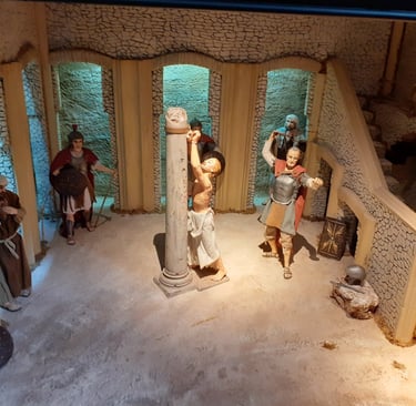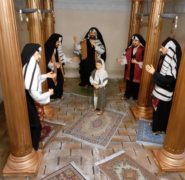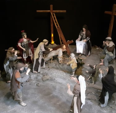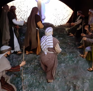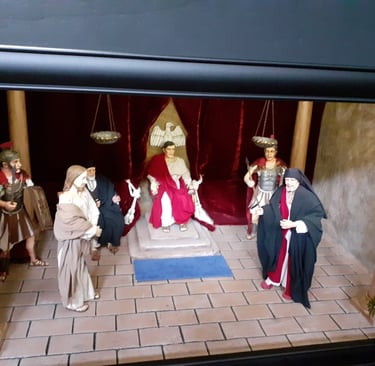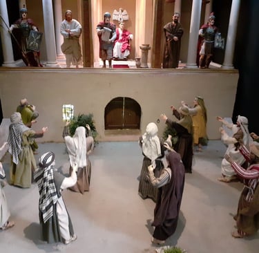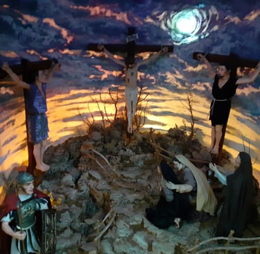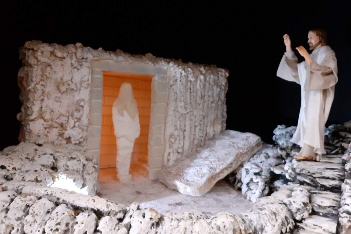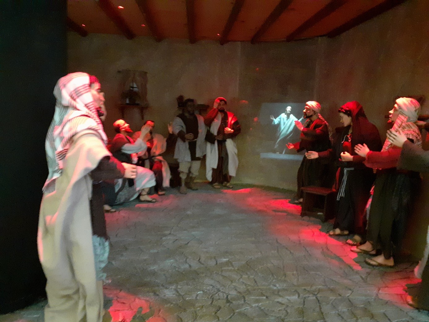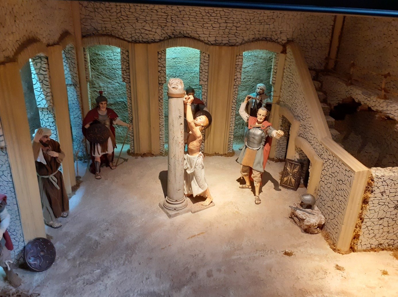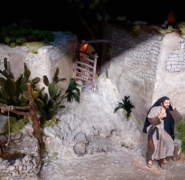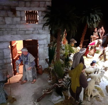 Oui, c’est très émouvant de la voir ainsi… On va voir maintenant le Diorami de la vie de Jésus : la vie de Jésus représentée par des crèches…