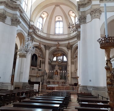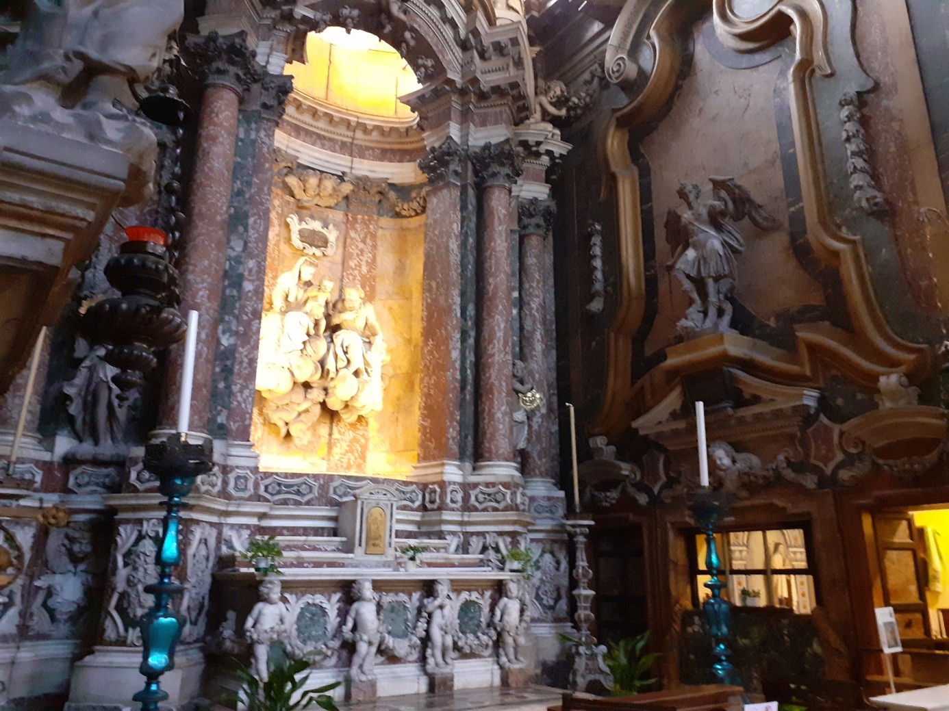En effet ! Mais cette église fut remplacée par une nouvelle église en 1611, sur un dessin de Palladio. Un couvent fut même construit à côté, qui abrita les reliques de Sainte Lucie. Mais le couvent fut démoli en 1846 quand commencèrent les travaux d’aménagement de la gare ferroviaire et le corps de Sainte Lucie se retrouva de nouveau dans l’église, jusqu’en 1860, où celle-ci fut à son tour démolie pour agrandir la gare. C’est alors qu’il fut décidé de transporter le corps de Sainte Lucie dans cette église...