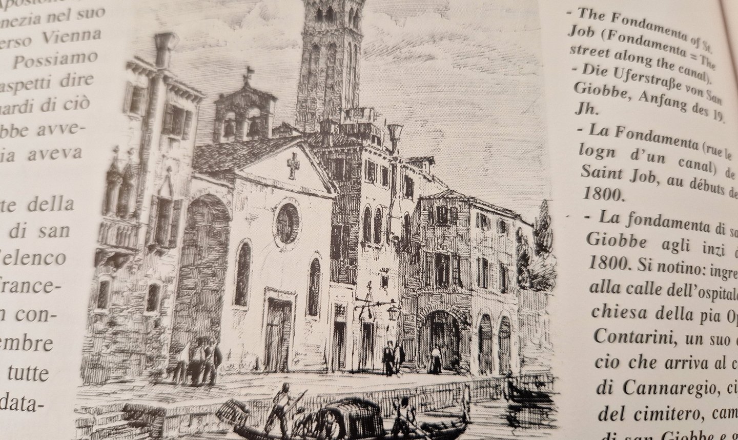 Regarde, dans le livre que j'ai trouvé dans l'église, il y a un dessin de cette église et de la fondamenta San Giobbe où on se trouve