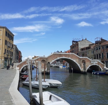 La première fois que l’on passe sous un pont qui enjambe le Grand Canal !