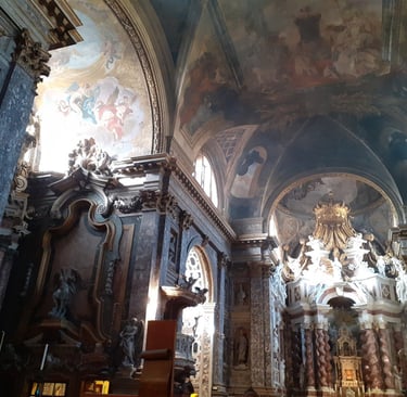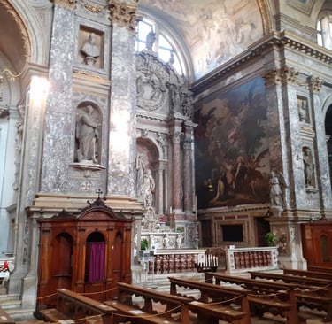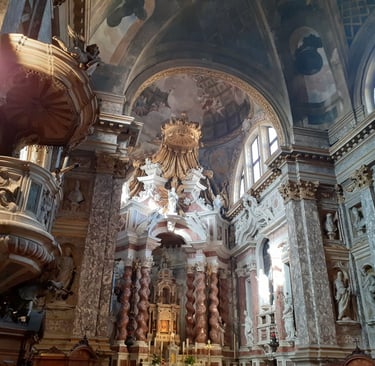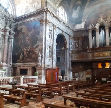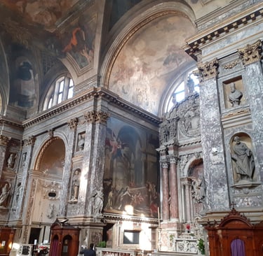 Tu peux rtemarquer que cette chapelle a conservé le style gothique de l'oratoire d'origine, qui tranche avec le style Renaissance du reste de l'église. C'est dans cette chapelle que Saint Bernardin de Sienne a célébré la messe. Sur l'autel se trouve le retable de Gian Girolamo Savoldo représentant La Nativité du Christ, réalisée en 1540... On va s'attarder devant une autre chapelle : la chapelle Cendon...