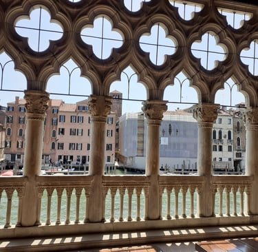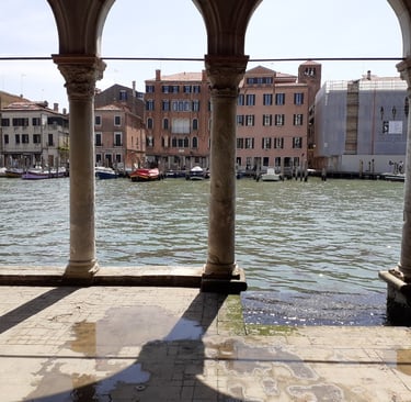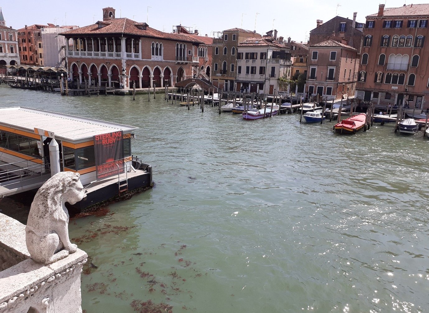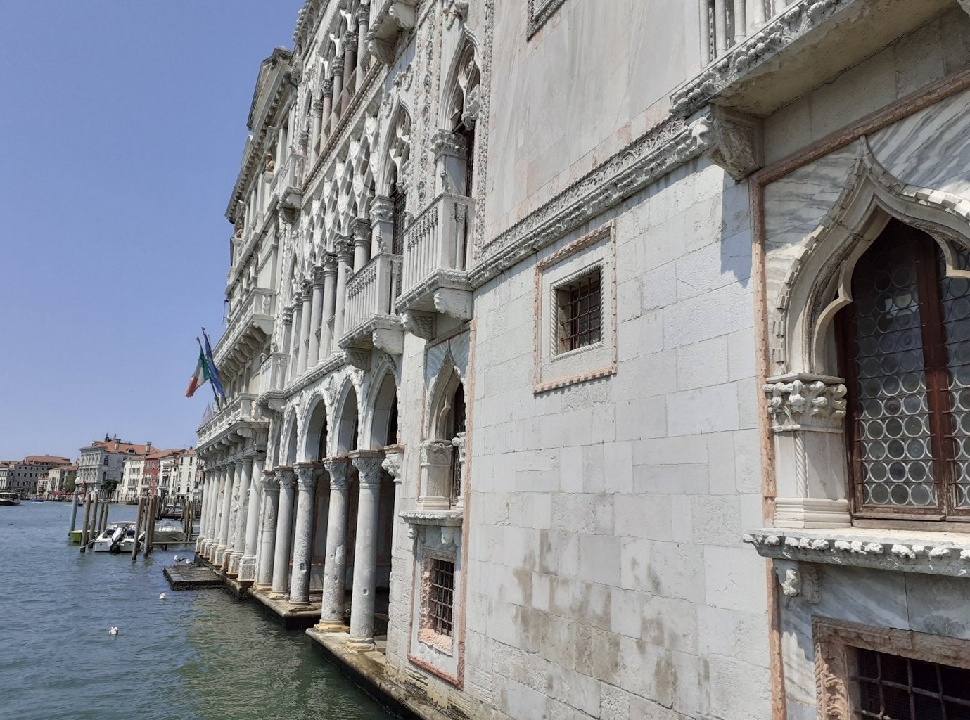 On sort pour voir la façade sur le Grand Canal… On la voit sur le côté en se penchant un peu…