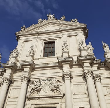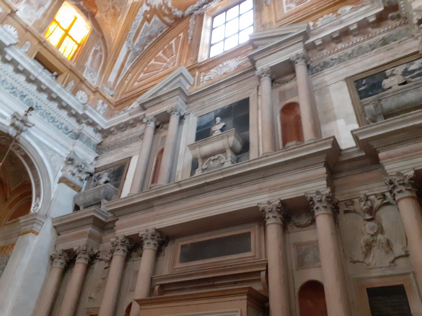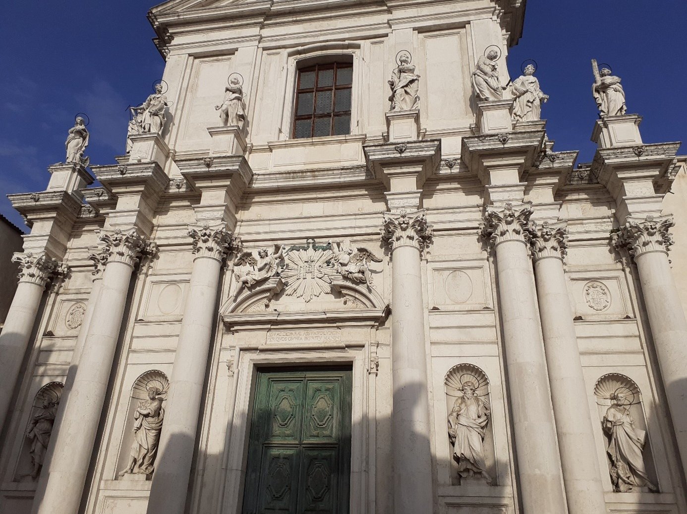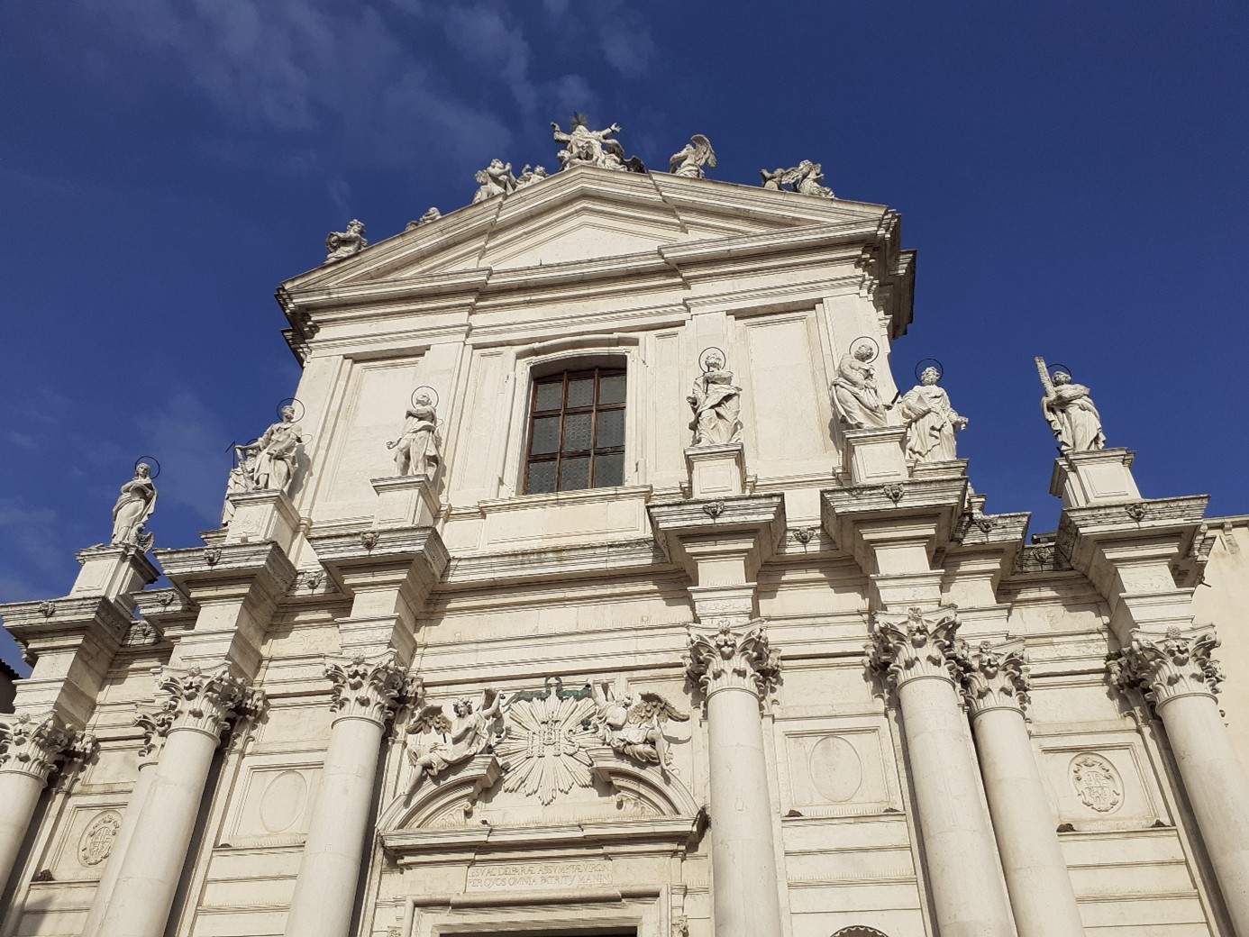 C’est tout un symbole, car l’ordre des Crociferi, des « Porte-croix », qui soutenait les croisades, fit construire la première église, qui fut ensuite dédiée aux Gesuiti, aux Jésuites…