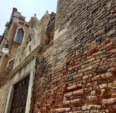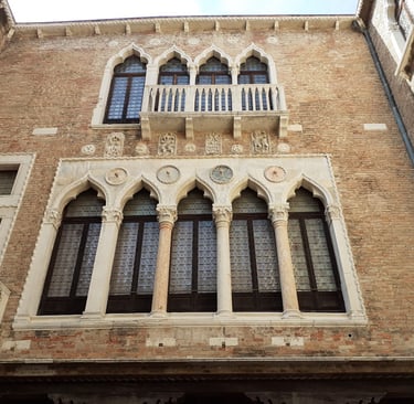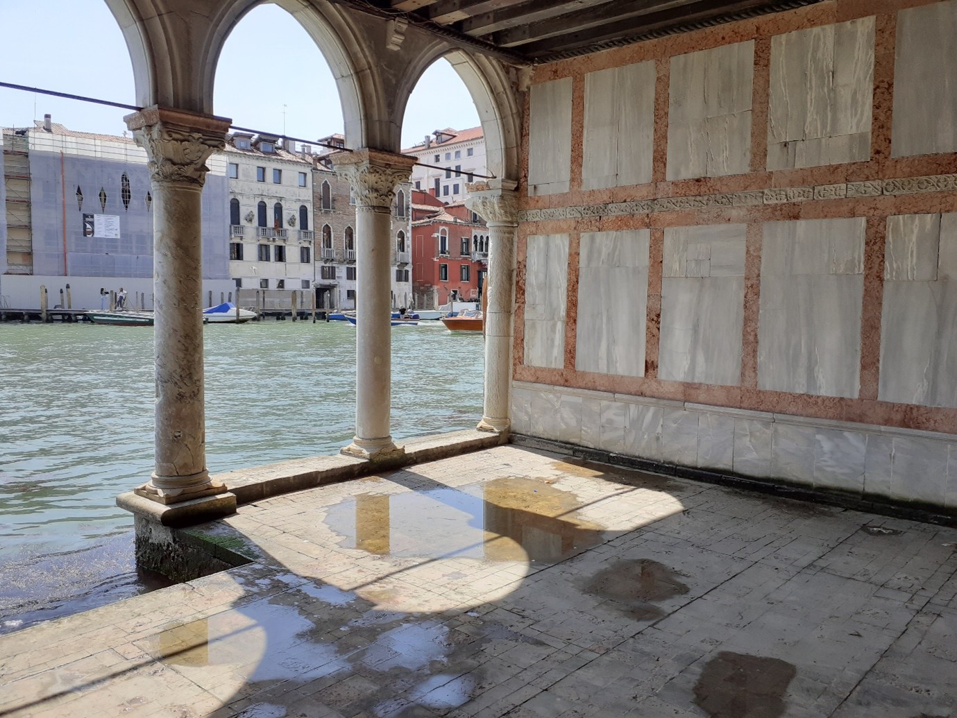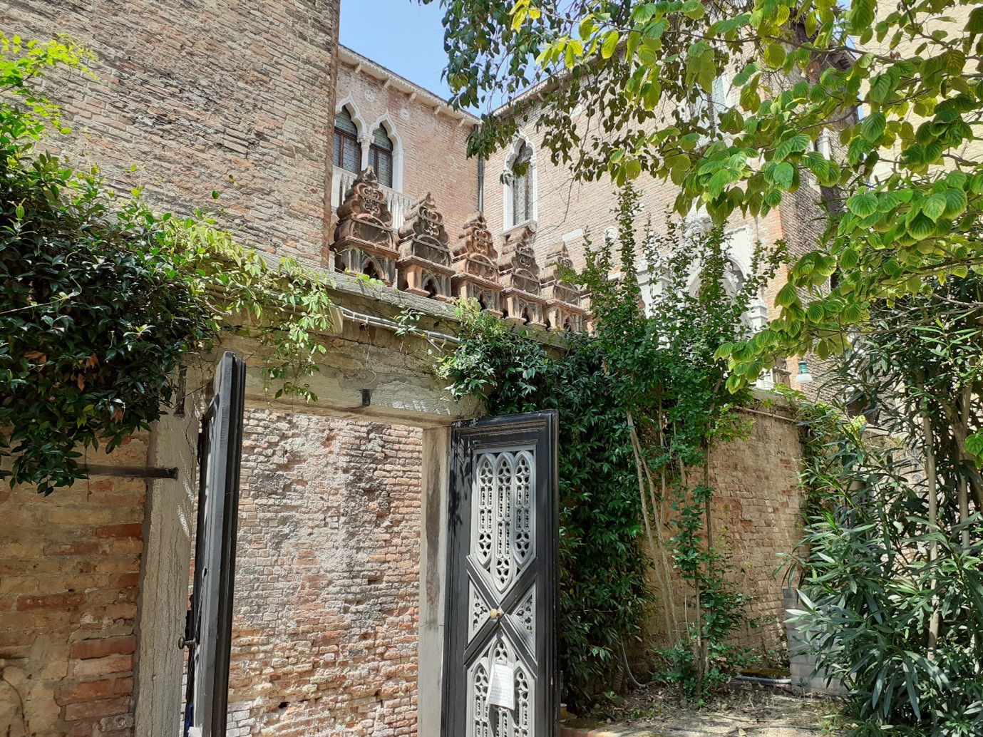 Au-dessus de ces colonnes, on voit des barbacani en bois, typiques de Venise, mais qui ici ne servent pas à élargir l'espace des maisons du côté de la rue mais à soutenir l'édifice...