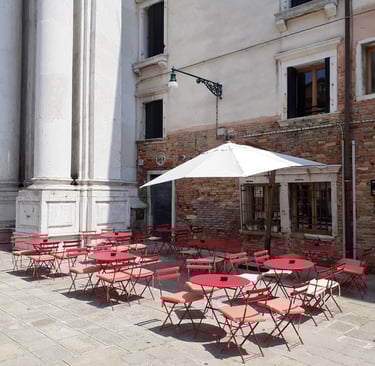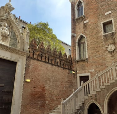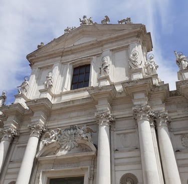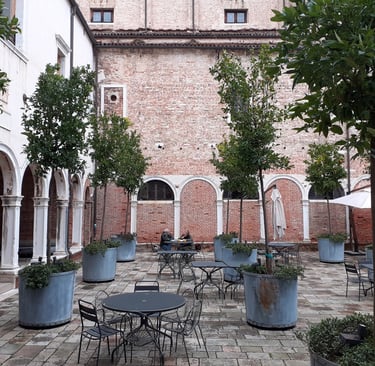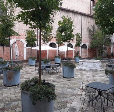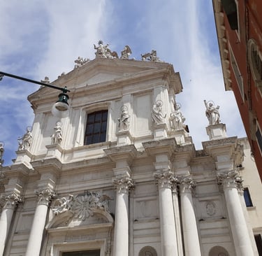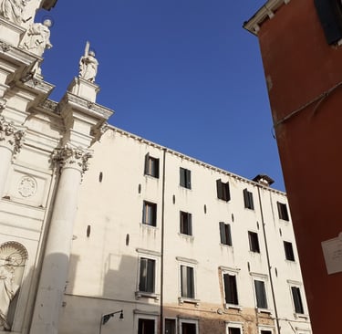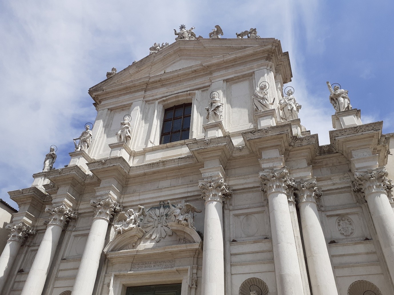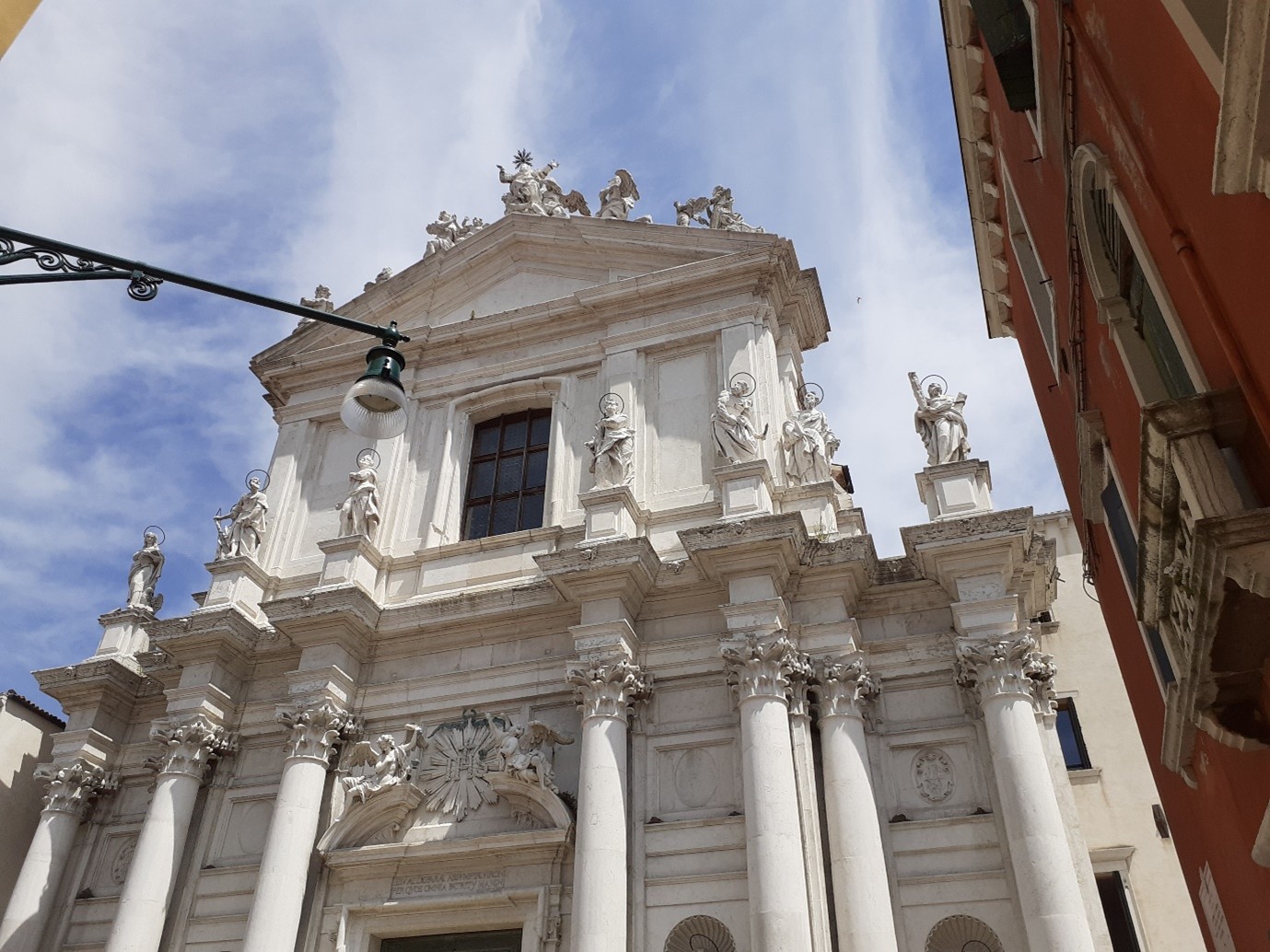 Tout à fait ! L’église fut dédiée à Santa Maria Assunta, Sainte Marie de l'Assomption ; elle a conservé d’ailleurs ce nom, accolé à celui de Gesuiti. Mais cet ordre fut supprimé en 1656 par le Pape car il était accusé d’avoir des mœurs dissolues. Les Jésuites, qui avaient dû quitter Venise en 1606 suite au conflit entre la République de Venise et la Papauté, acquirent, à leur retour en 1657, le couvent qui se trouvait à droite de l’église et firent reconstruire l’église, dans le style baroque. L’ordre des Jésuites fut à son tour supprimé en 1773 ; le couvent servit alors d’école publique puis, en 1807, de caserne. Aujourd’hui, il abrite un hôtel et un restaurant. On ira le visiter avant de déjeuner sur la terrasse.
