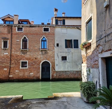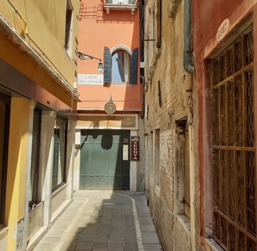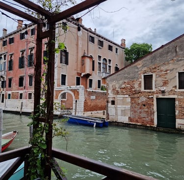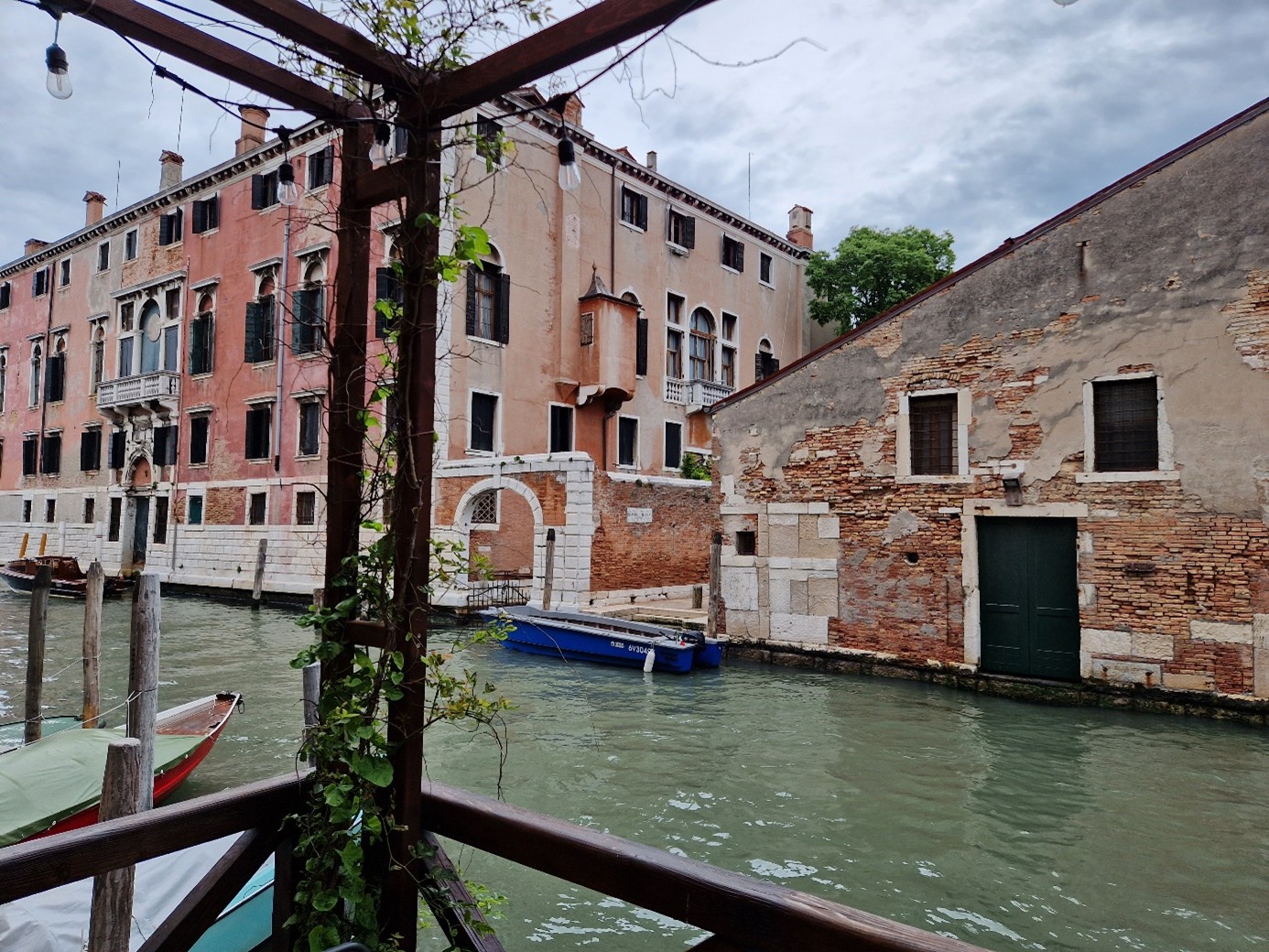 Eh oui ! Ce soir, on aura fait la moitié de notre voyage ! Je te raconterai pourquoi il dure 72 jours…. Allons-y ! On va traverser le rio de Santa Caterina pour prendre en face le rio di Ca’Dolce…