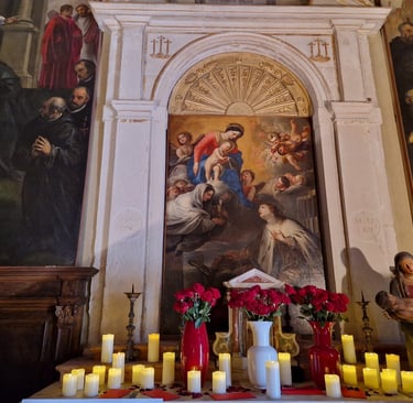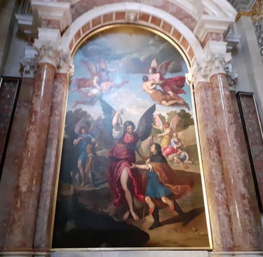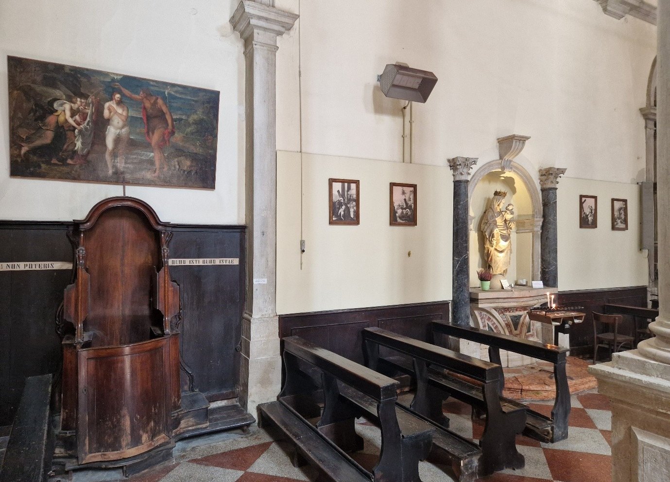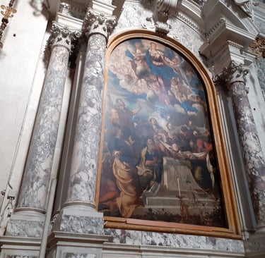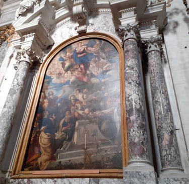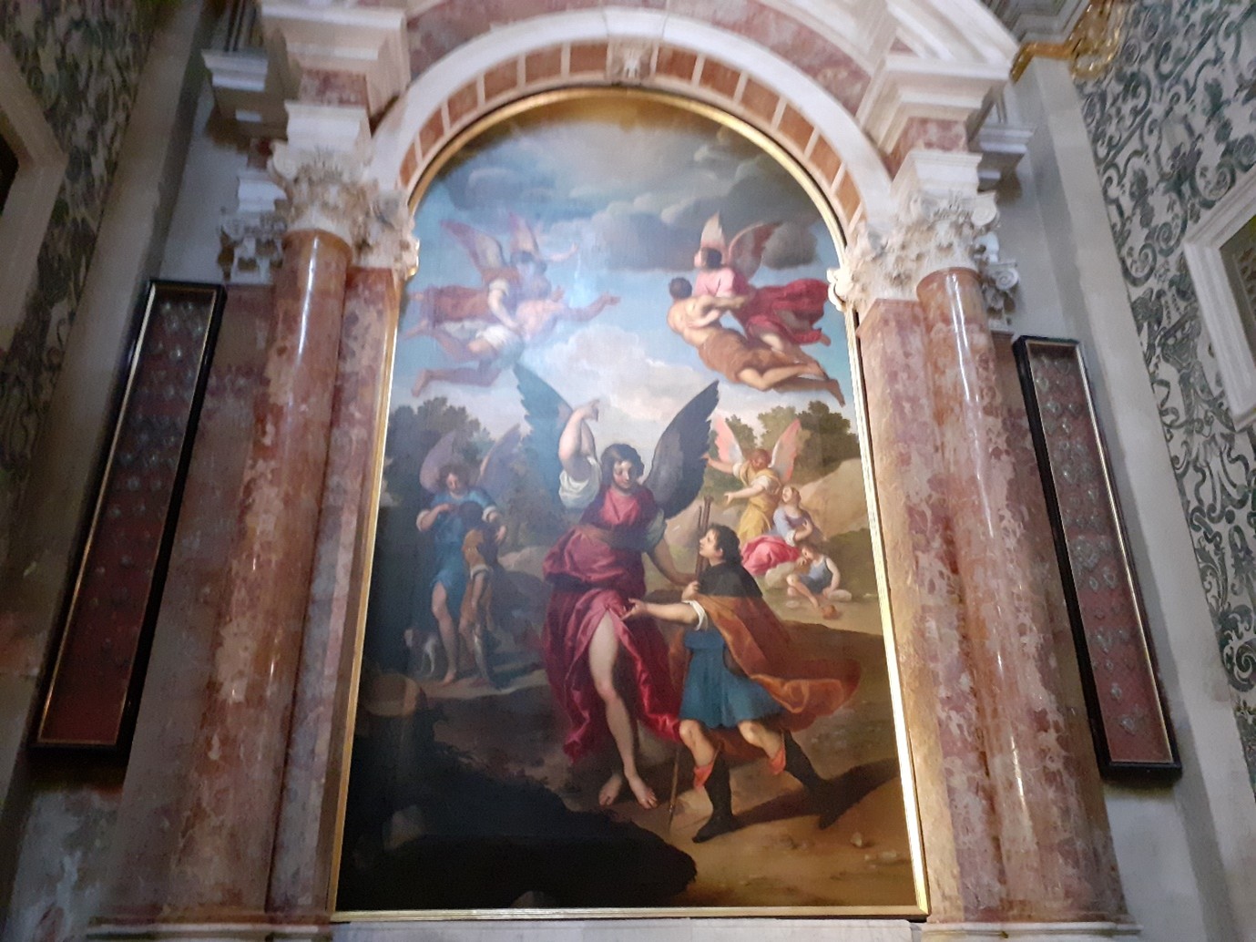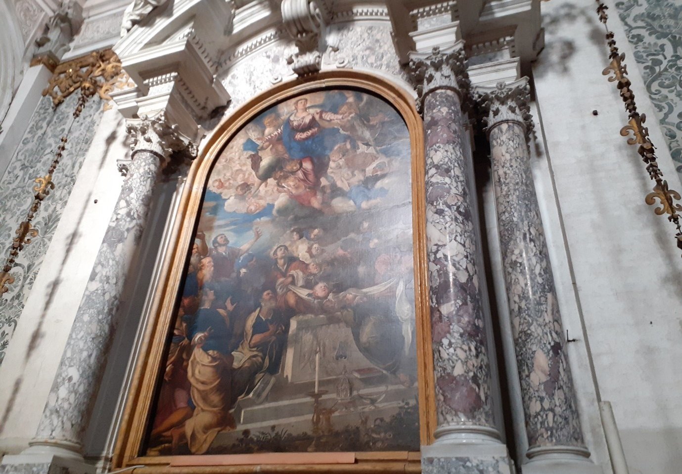 Dans la première chapelle à droite, on trouve un retable de Palma Le Jeune : l’Angelo custode ed angeli che trasportano al cielo le anime dei loro protetti...