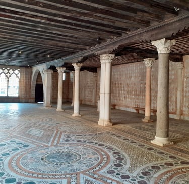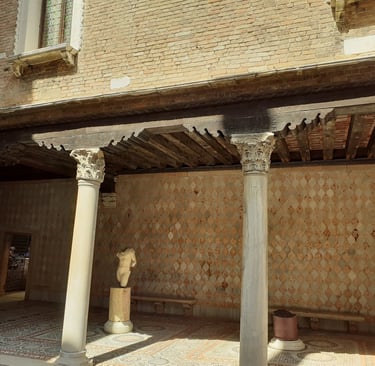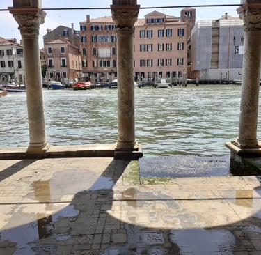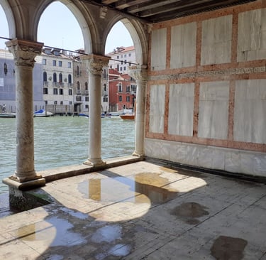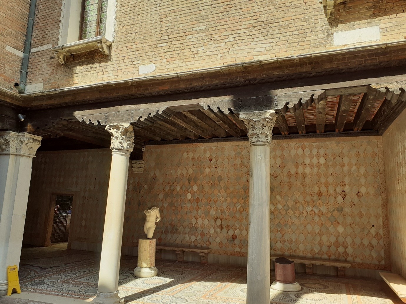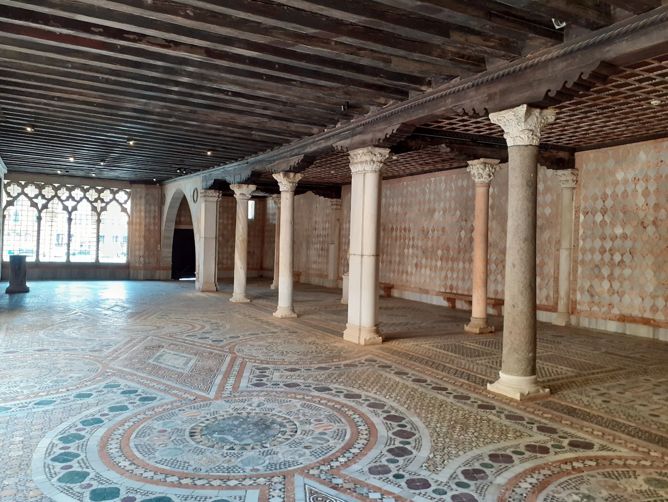 On entre maintenant dans le grand atrium donnant sur le Grand Canal avec son pavement en mosaïque...