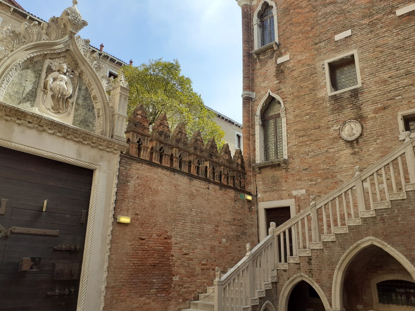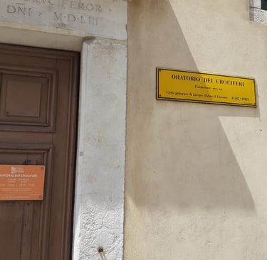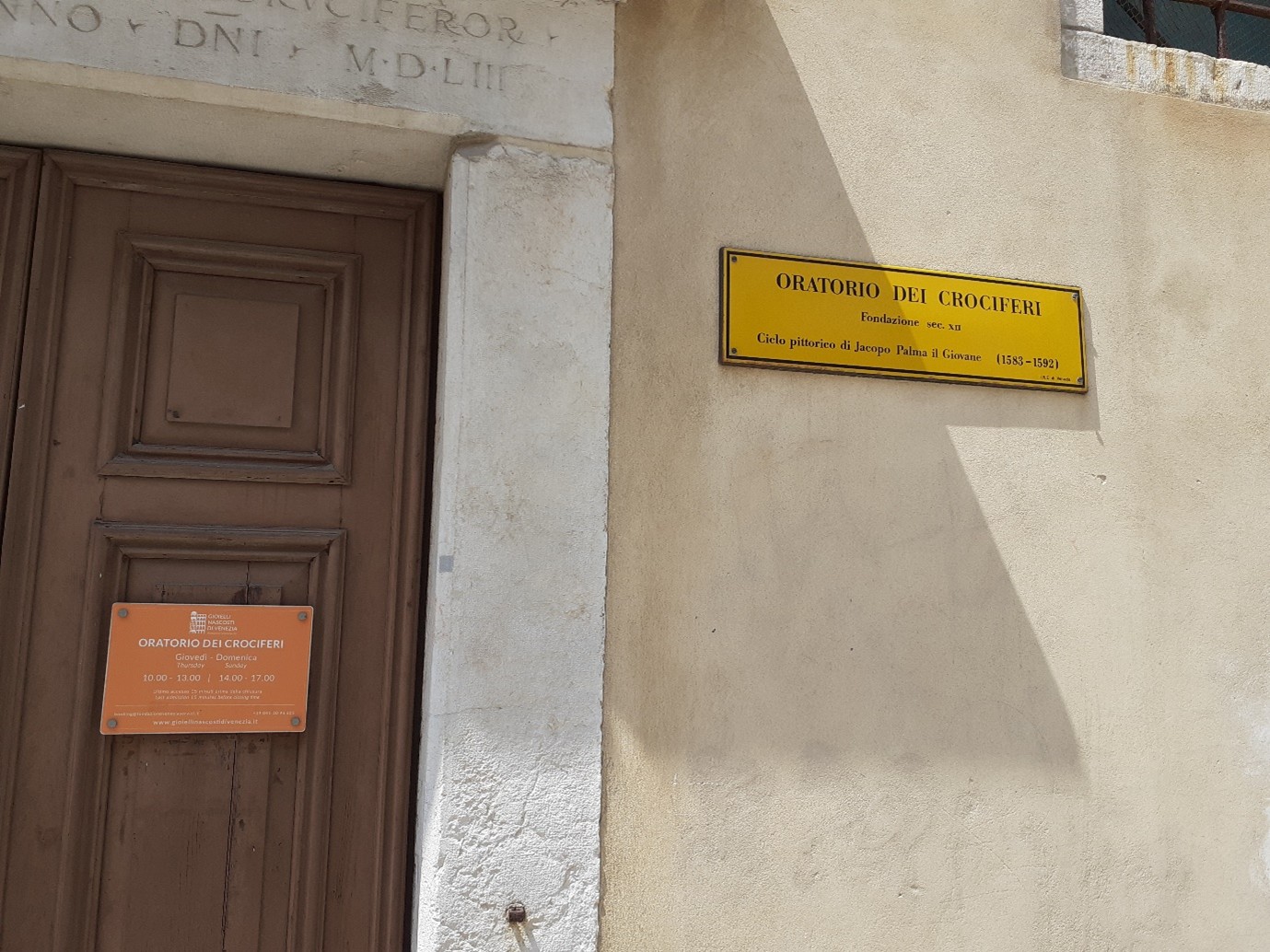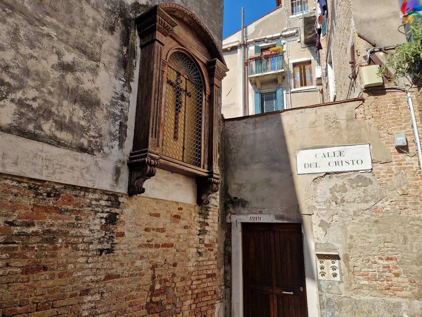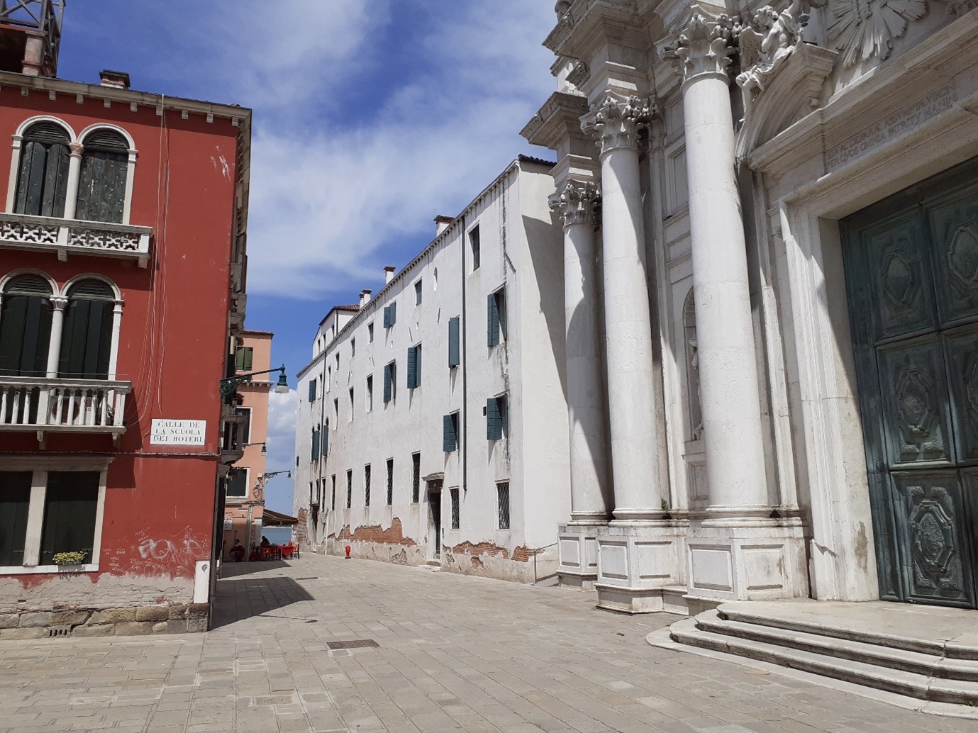 Sur la façade de plusieurs maisons, on peut encore lire des inscriptions des anciennes Scuole comme celles des tailleurs, des tisserands, des tonneliers ; c’est pour cela que la calle parallèle à celle des Crociferi s’appelle calle Scuola dei Botteri.