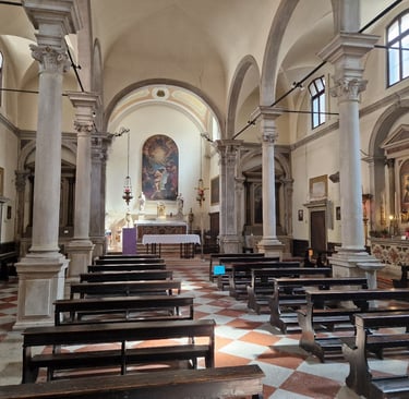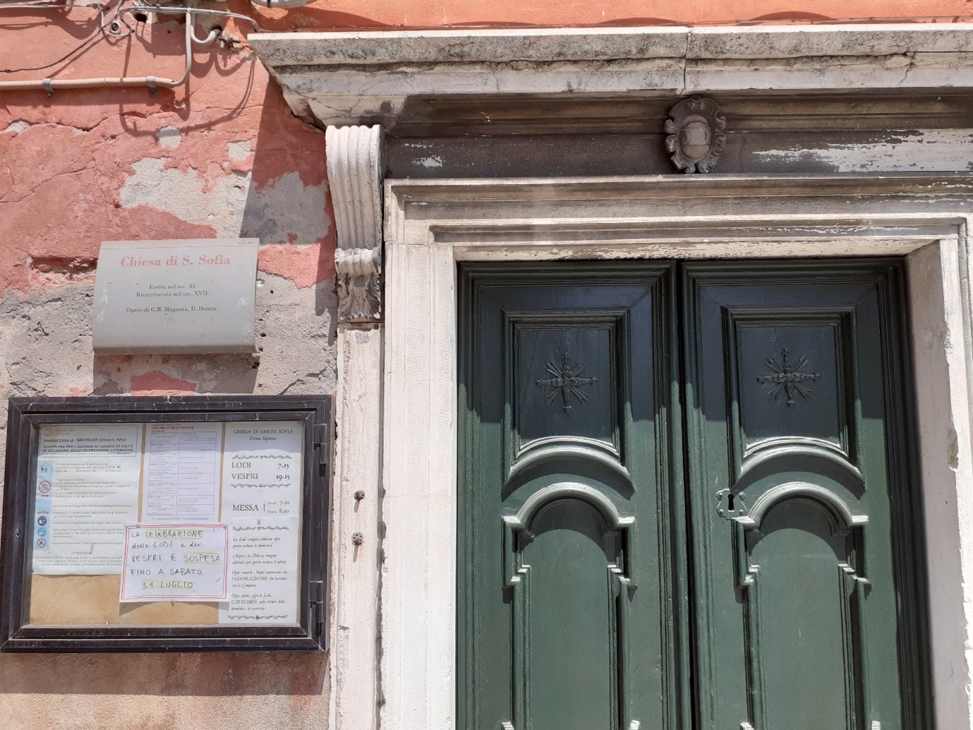 L'église Santa Sofia a été fondée au XIème siècle puis restaurée au XIIème siècle et même restructurée au XVIIème siècle par l'architecte Antonio Gaspari. Elle fut fermée au culte en 1810 mais rouverte en 1836 comme succursale de l'église San Felice.... Entrons !