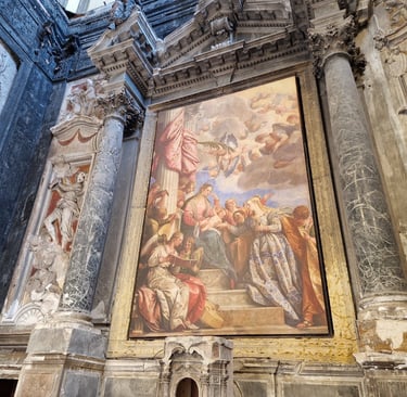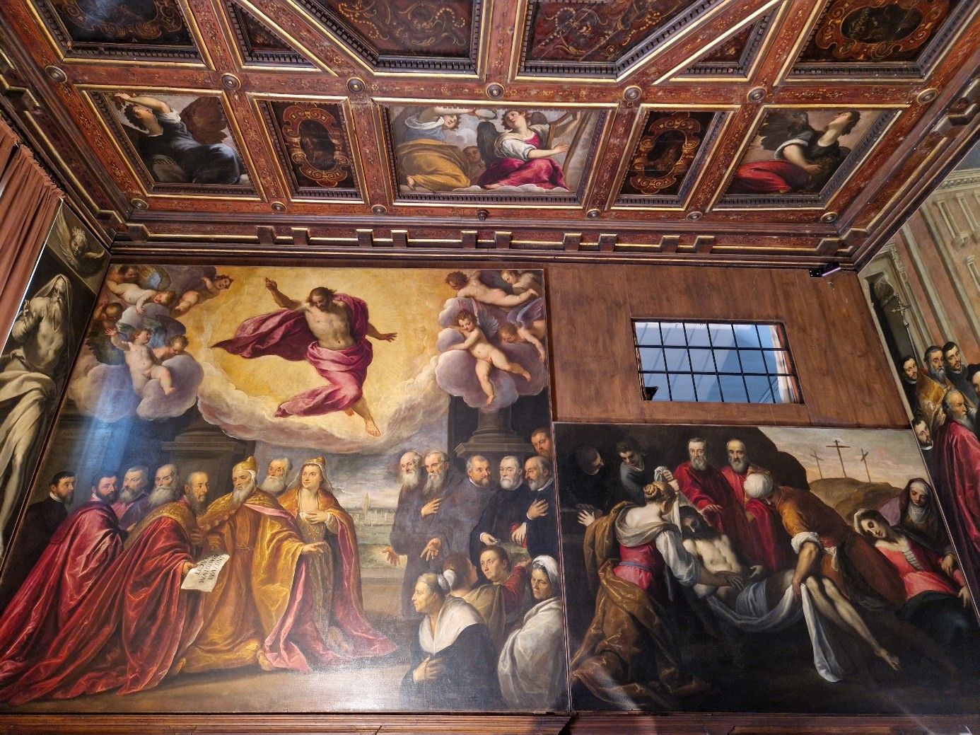 En effet ! Il contient un cycle de peintures de Palma le Jeune. Entrons !