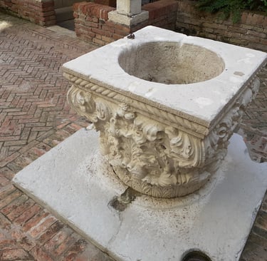 Cette vera da pozzo est faite de marbre très spécial : un marbre coquillier, que l'on appelle brocatelle, de Vérone...