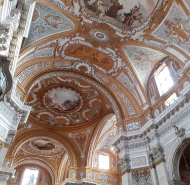 De cette cour, on rejoint la calle dei Crociferi qui nous conduit en face de l’église des Gesuiti...