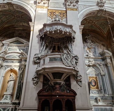 Oui, la décoration est très riche ! C'est le propre du style baroque. Les murs sont en marbre blanc et vert.