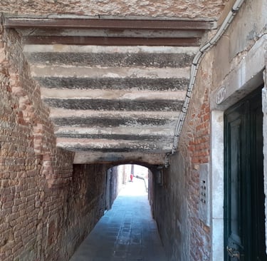 Exact ! on va passer sous ce sottoportego ! Il nous conduit à la Corte delle Candele qu’on avait déjà traversée tout à l’heure.