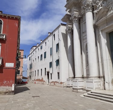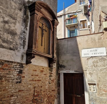 Oui, c’est un joli nom ! Au bout de ce rio, on tourne à droite pour prendre le rio de Santa Sofia… Juste après être passé sous le ponte Priuli, on s’arrête sur le campiello Priuli… La famille Priuli était d’origine hongroise ; elle se fixa à Venise au XIIème siècle. Il y eut trois doges issus de cette famille…. On se trouve derrière l’église Santa Sofia, que l’on va rejoindre par la calle del Cristo… L'entrée de l'église donne sur la Strada Nova mais sa façade est cachée par des maisons...