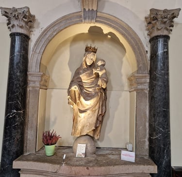 On trouve aussi Le Baptème de Jésus, attribué à Pietro de Mera... Et une statue de Vierge à l'Enfant, datant du XIVème siècle...