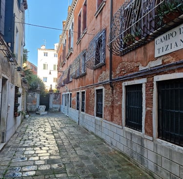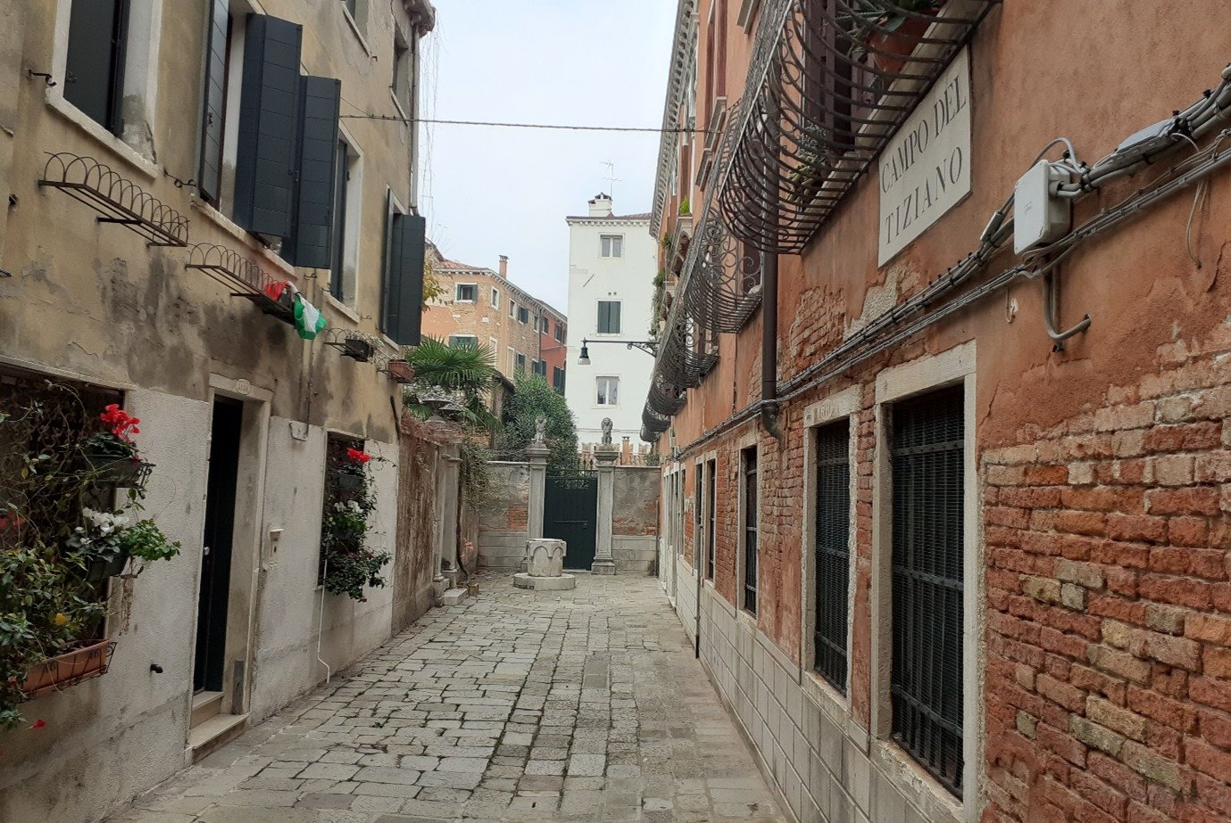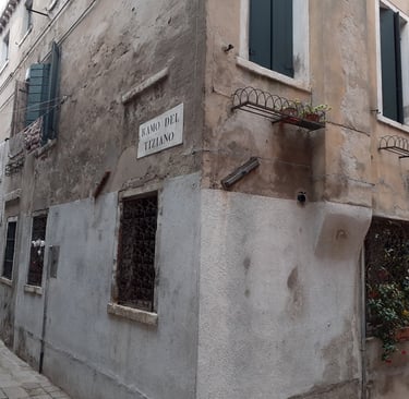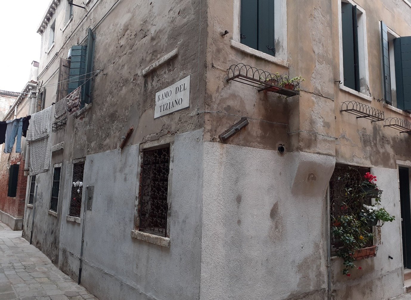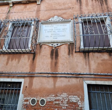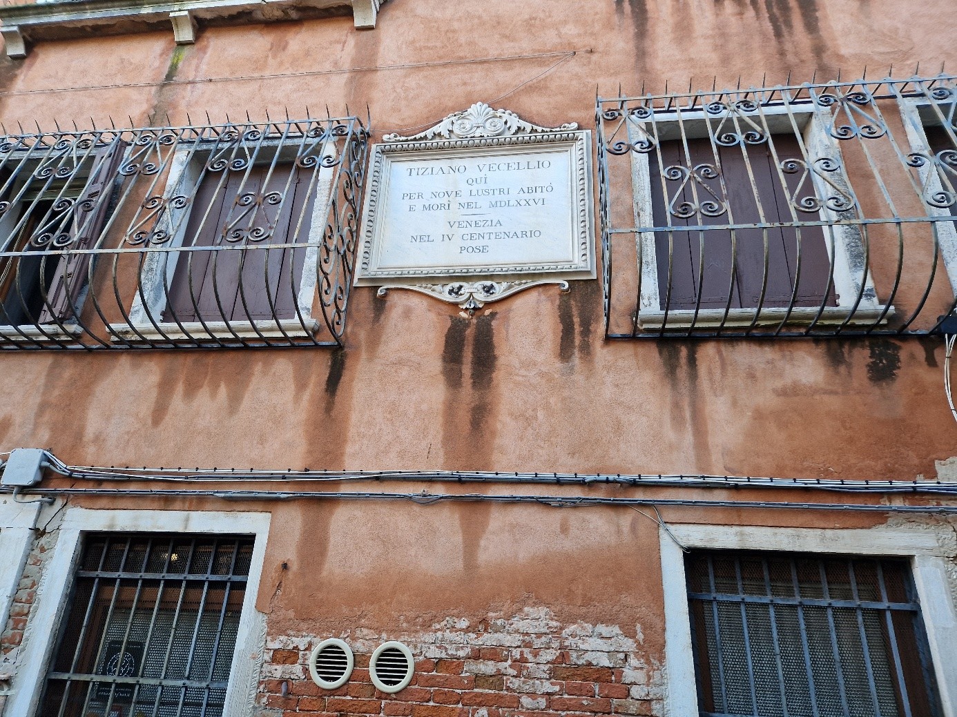 Oui, traduit en français par Titien... Comme tu peux le lire sur cette plaque, il vécut ici les neuf dernières années de sa vie, de 1567 à 1576. Mais il eut précédemment une autre maison dans cet îlot, ainsi qu'un atelier, qu'il occupa dès le début des années 1530. On les verra un peu plus tard...