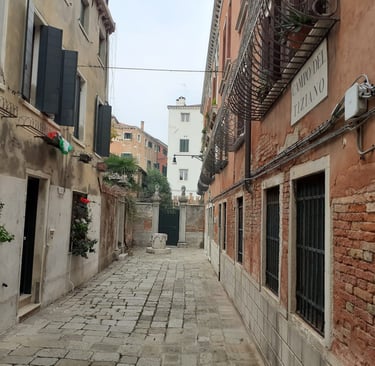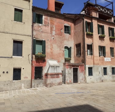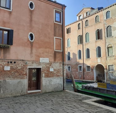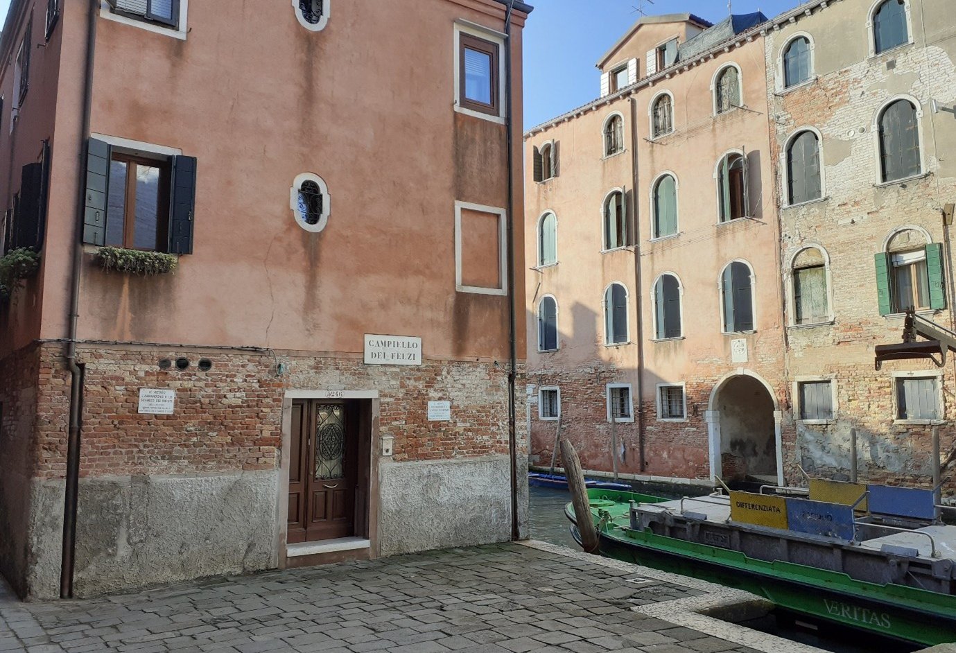 On va prendre le rio de l'Acqua dolce sur la droite et rejoindre le rio de Santa Caterina… On prend le rio de Santa Caterina à droite cette fois… On va s’arrêter en face, après avoir traversé le rio dei Gesuiti : sur le campiello dei Felzi…