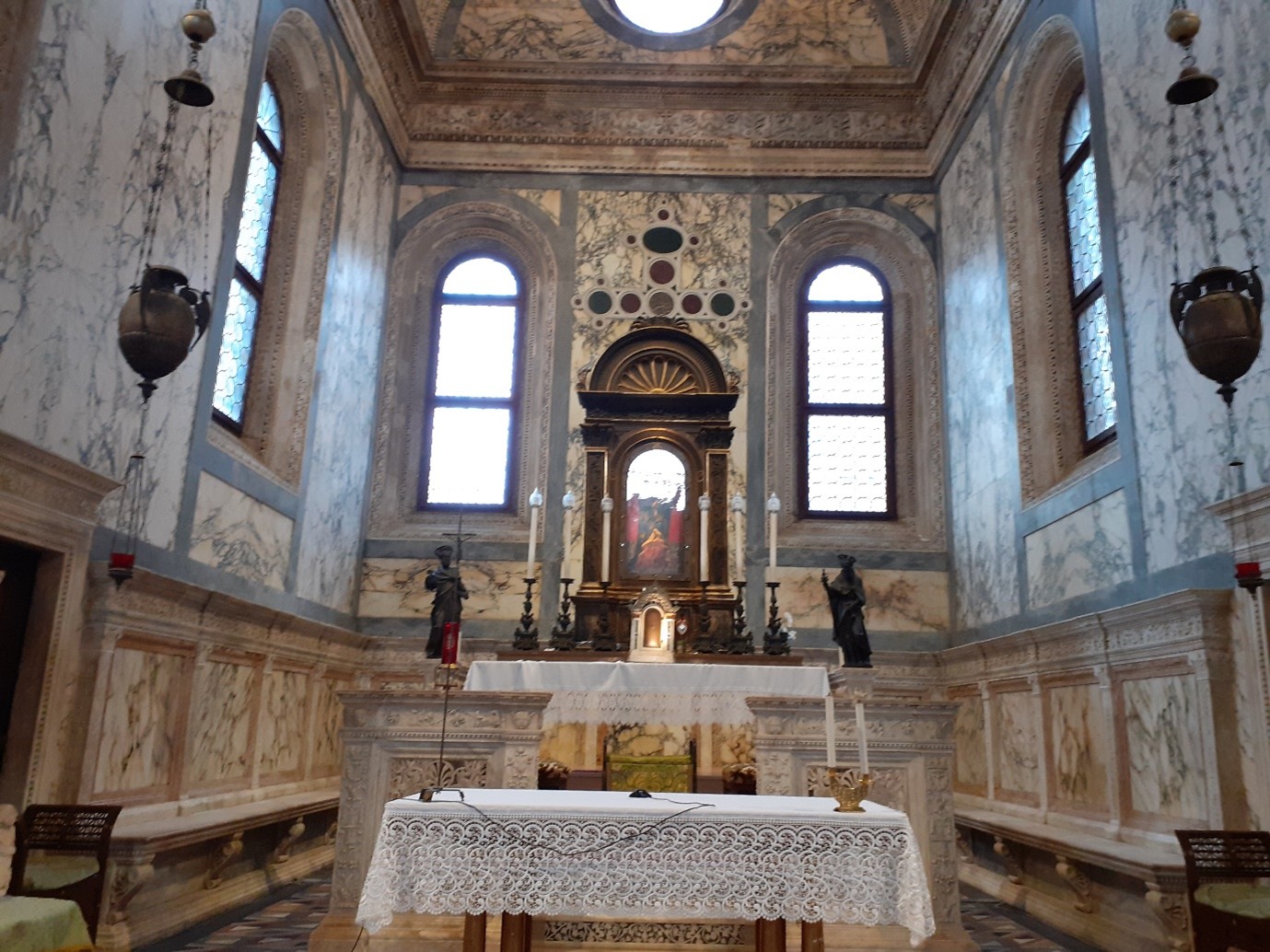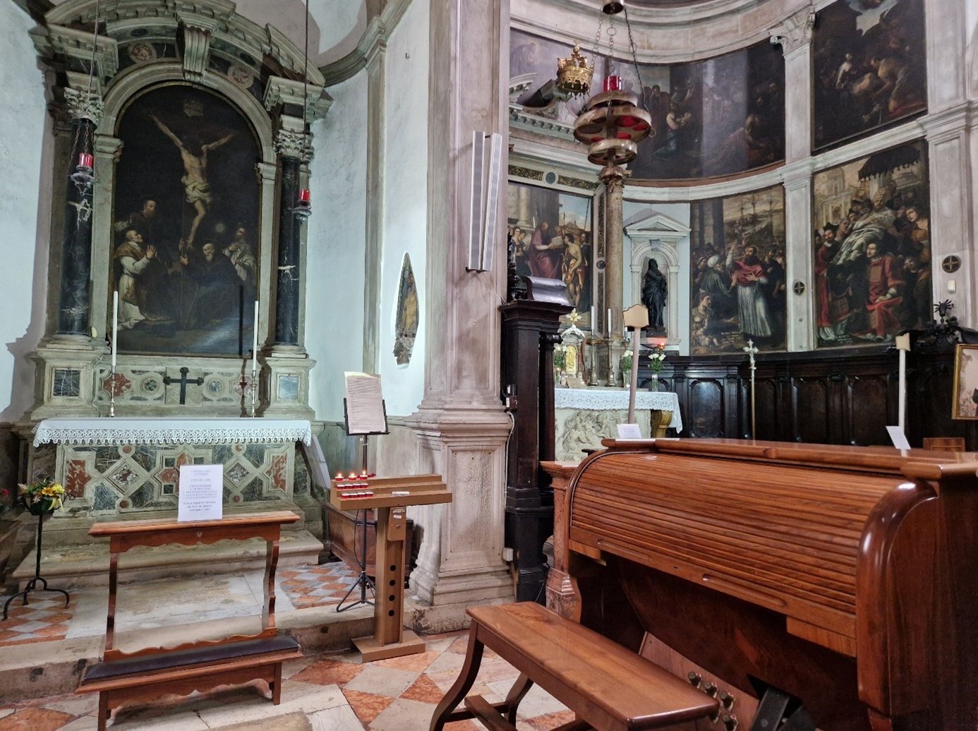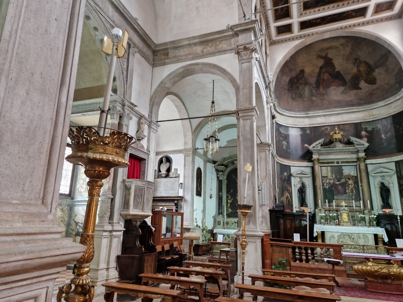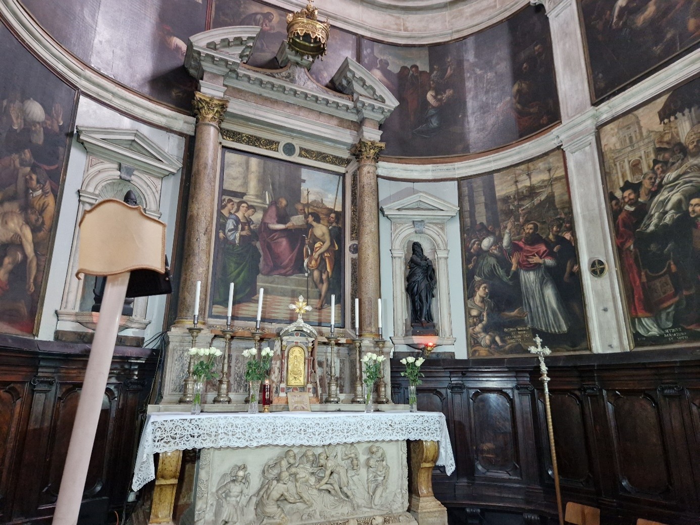Le retable de l'autel principal représente San Crisostomo, Saint Jean Chrysostome en français, avec les saints Jean-Baptiste, Liberal, Marie-Madeleine, Agnès et Catherine. Il fut réalisé en 1509-1511 par Sebastiano del Piombo, avant qu'il ne parte pour Rome...