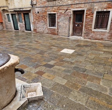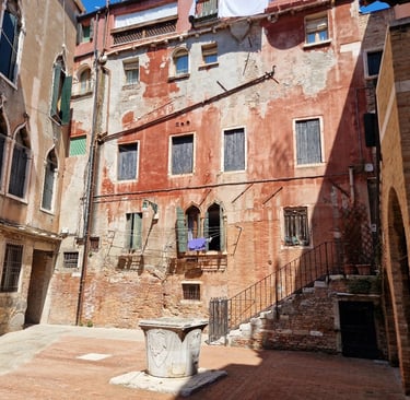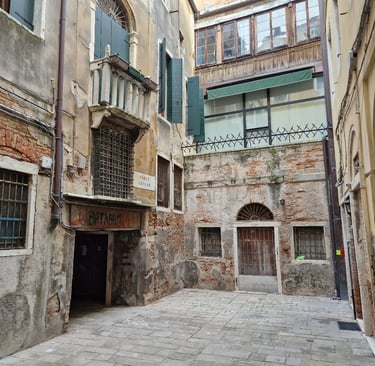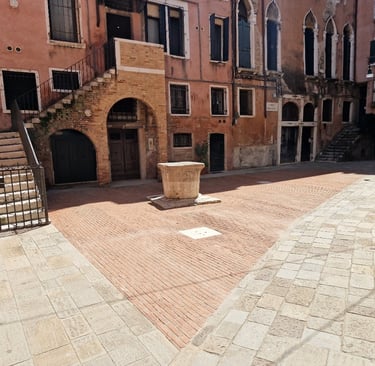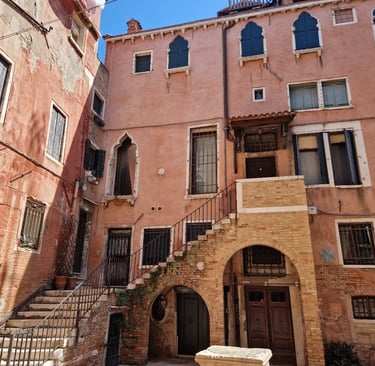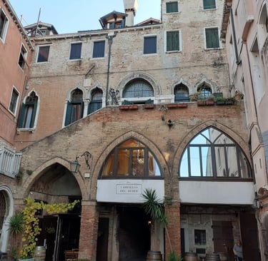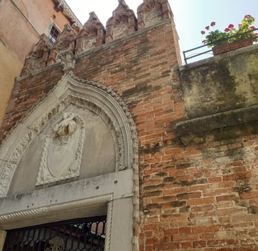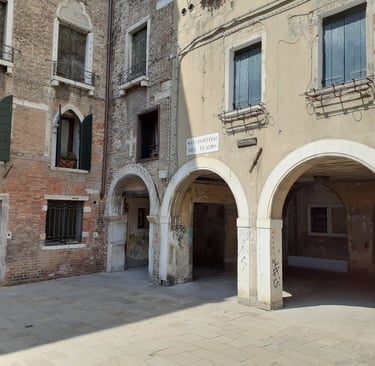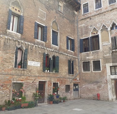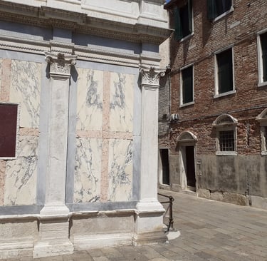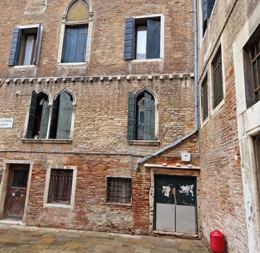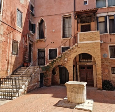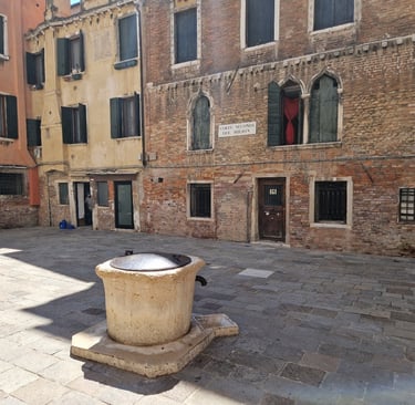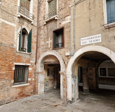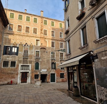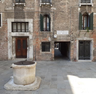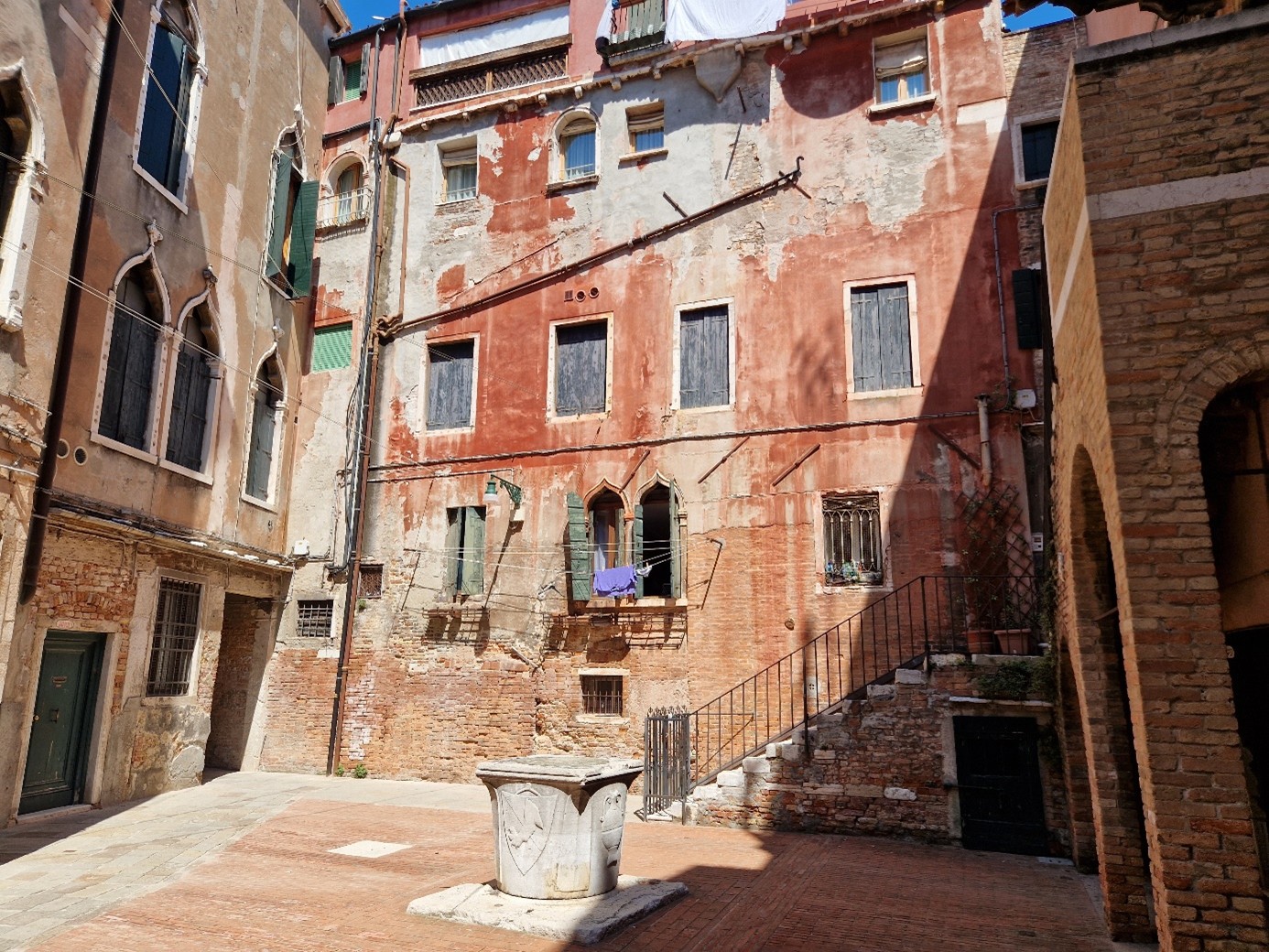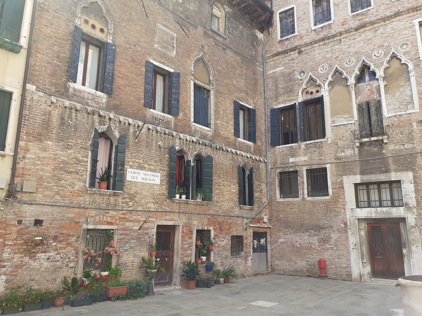 Oui, on peut dire que cette cour a les dimensions d'un campiello... La maison de Marco Polo fut détruite par un incendie en 1596 mais on trouve encore des éléments d'architecture vénéto-byzantine...