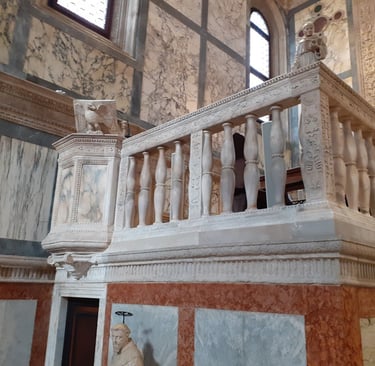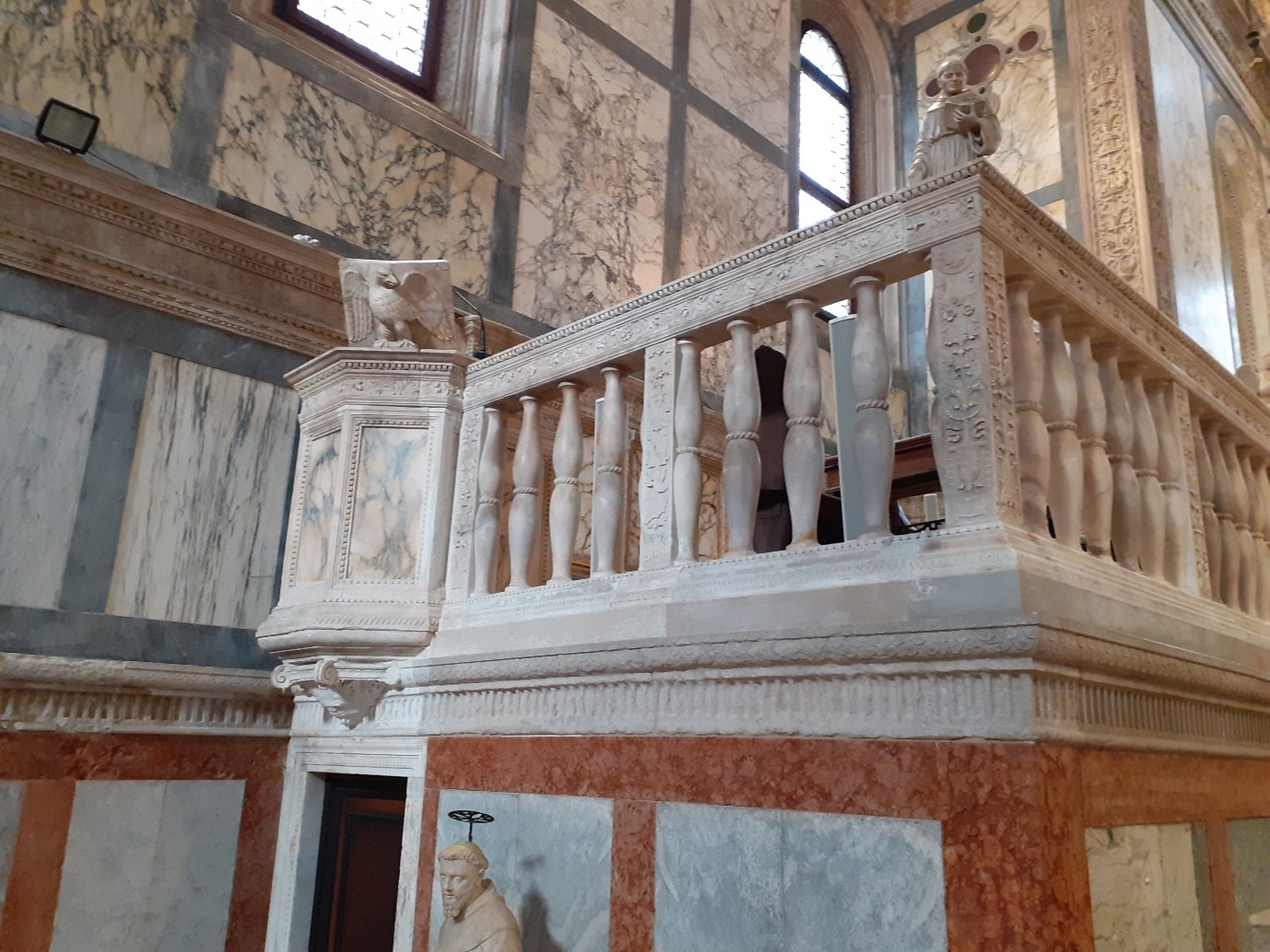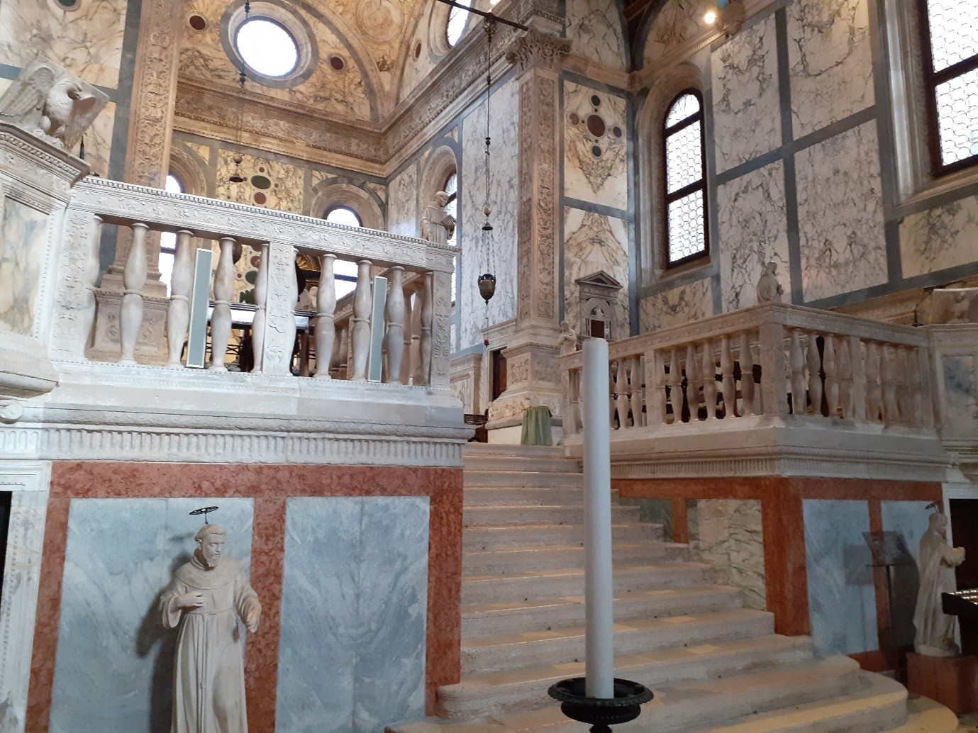 On retrouve ces deux saints sur la balustrade, exécutés cette fois par Tullio Lombardo un siècle plus tôt...