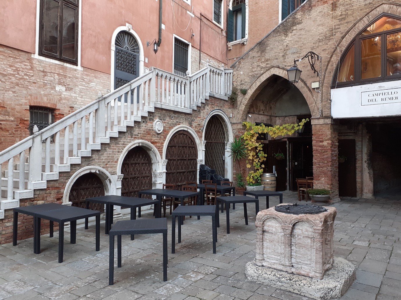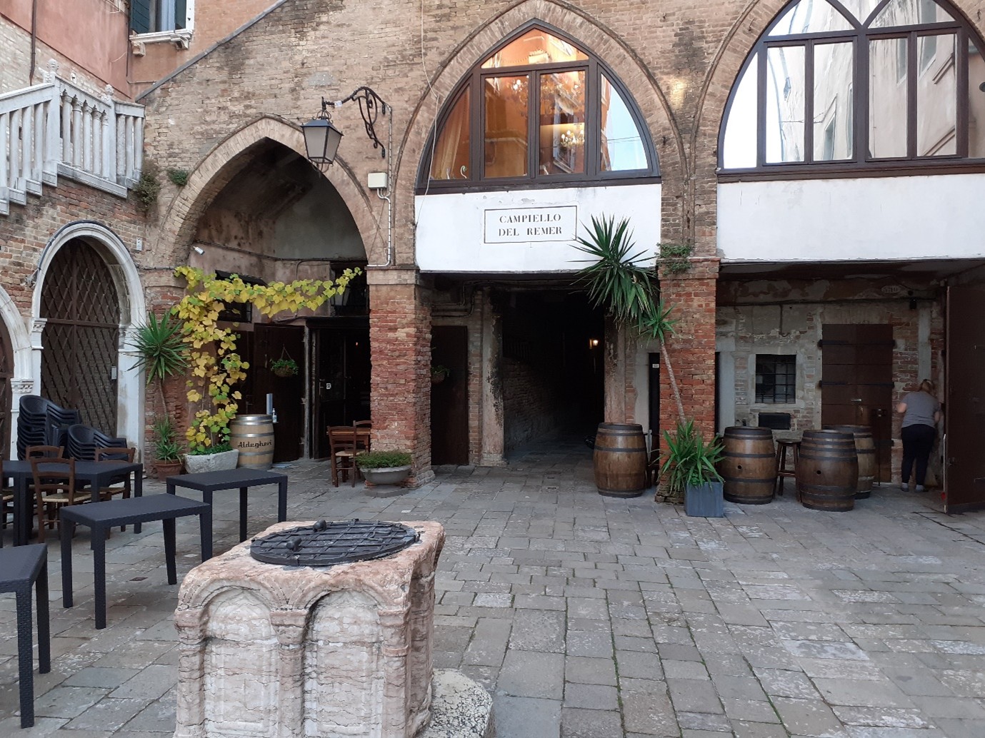 Après ce bon repas, je vais te monter une petite cour puis le plus beau campiello de Venise, le campiello del Remer, qui se trouve au bord du Grand Canal… On retourne sur le campo San Giovanni Crisostomo…