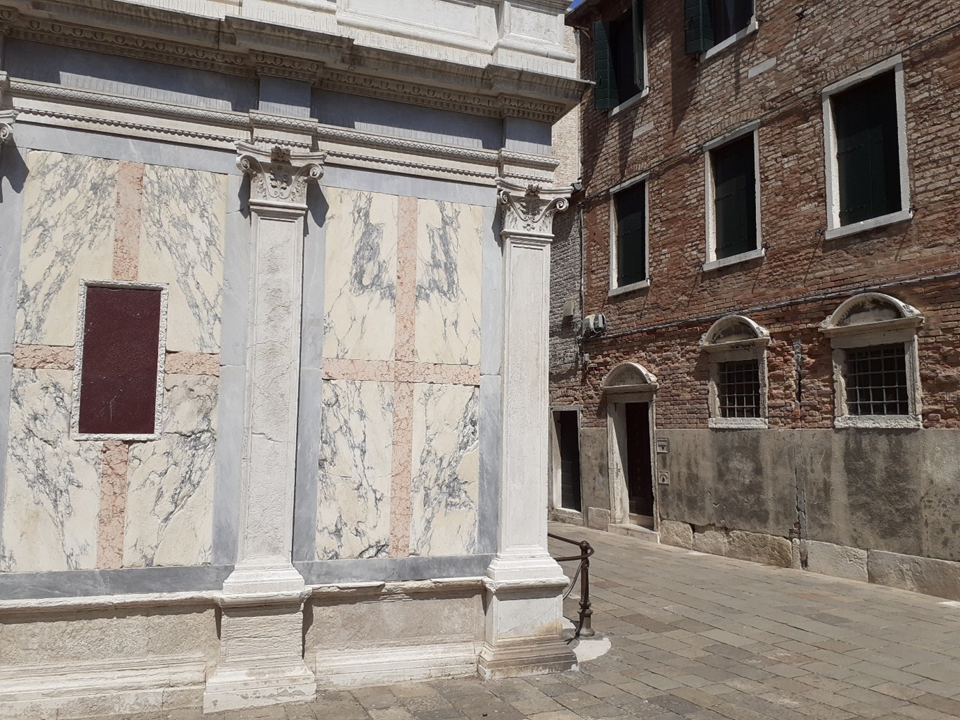 Oui, au pied de Santa Maria dei Miracoli ! L’église tient son nom d’une image de la Vierge Marie à laquelle on attribua des miracles. Cette image était accrochée à la maison d’un certain Francesco Amadi, qui habitait dans l’îlot de Santa Marina, que l’on visitera après-demain. Cette image commença à être vénérée. Un petit-fils de Francesco, Angelo, la plaça dans une petite chapelle artisanale qu’il installa dans la cour de sa maison, la Cà Amadi, sur l’actuel campo vers lequel on se dirige…