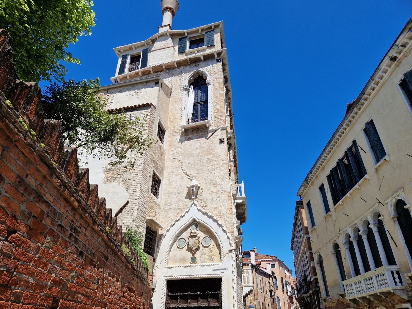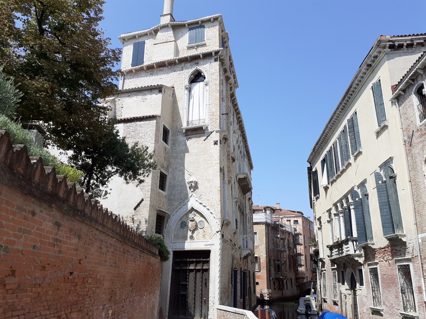 Le palais que l’on voit dos au Grand Canal est ce qu’il reste du palazzo Lion, qui date de la fin du XIIème siècle, de style byzantin. L’escalier extérieur a été refait au XXème siècle. La vera da pozzo, en marbre rouge, date, elle, du XIIIème siècle…